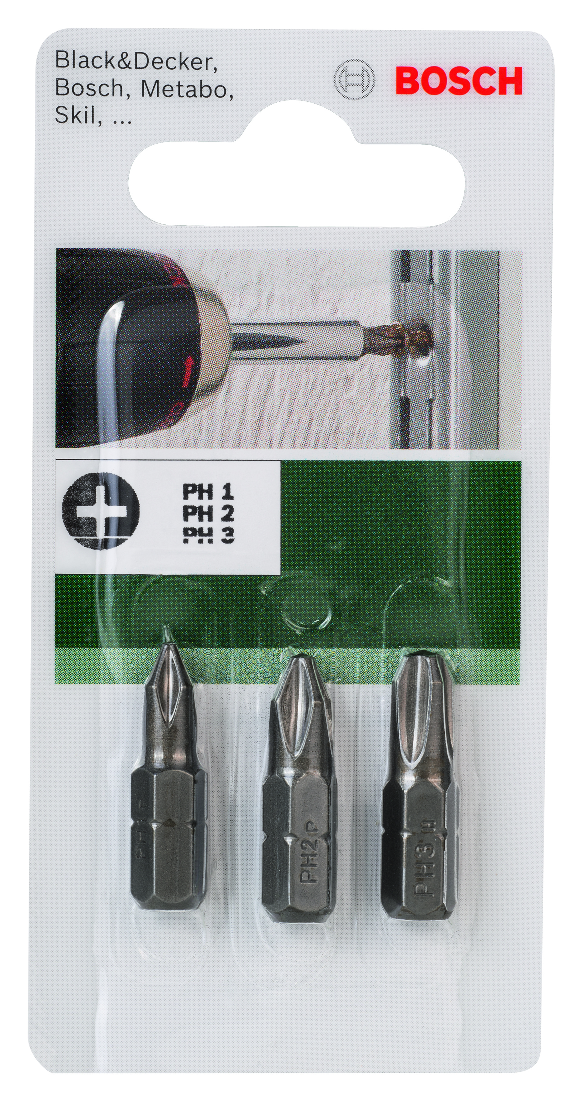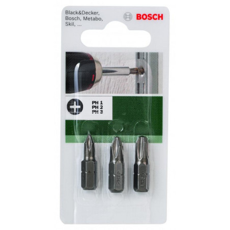 Emballage: 3Marque: BoschRéférence: 2609255964EAN: 3165140390330Description: EMBOUTS MP (SET EMBOUT 25MM, STANDARD (3) PH 1/PH 2/PH 3)