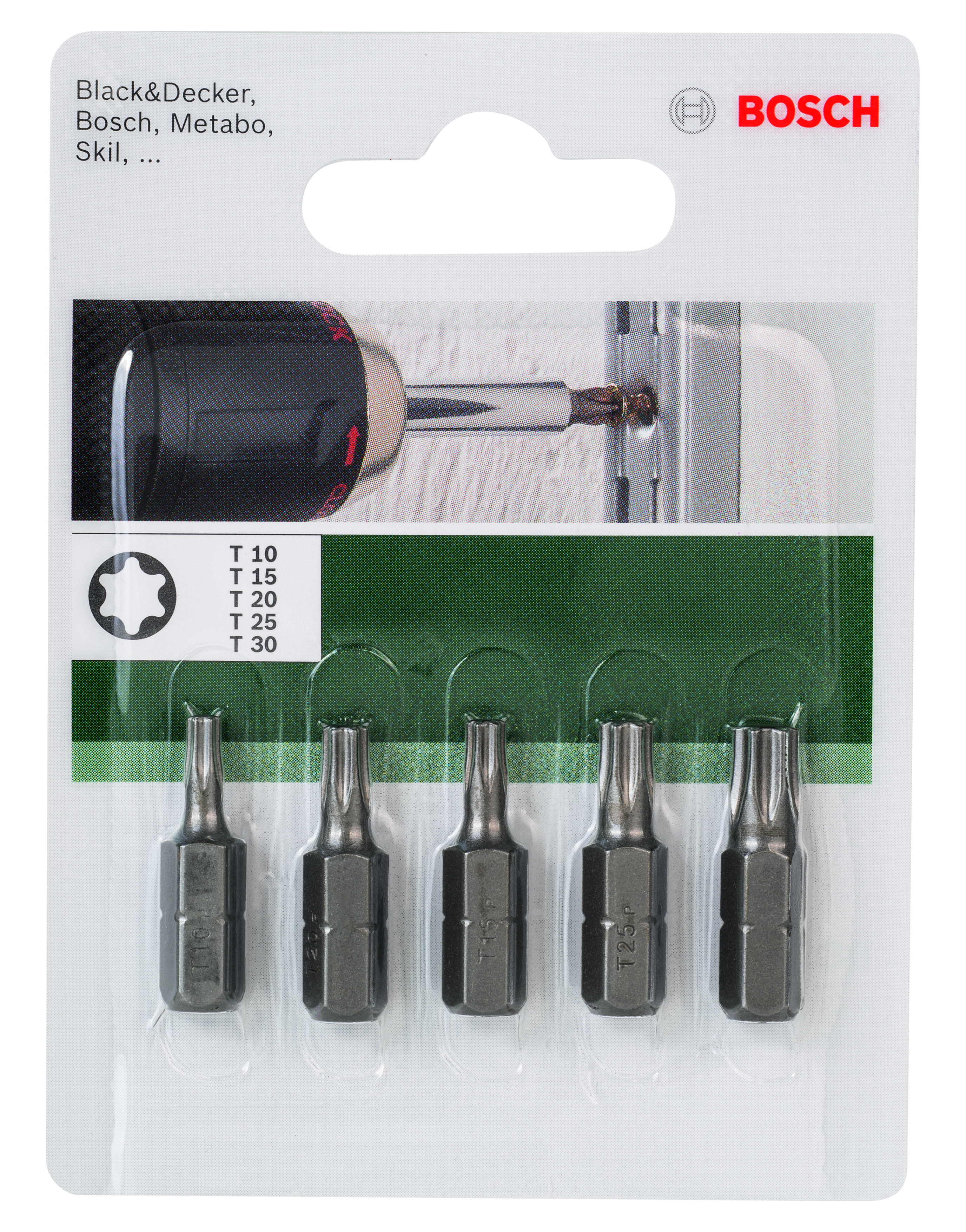 Emballage: 5Marque: BoschRéférence: 2609255970EAN: 3165140390392Description: EMBOUTS MP (SET EMBOUT 25MM, STANDARD (5) T10/15/20/25/30)