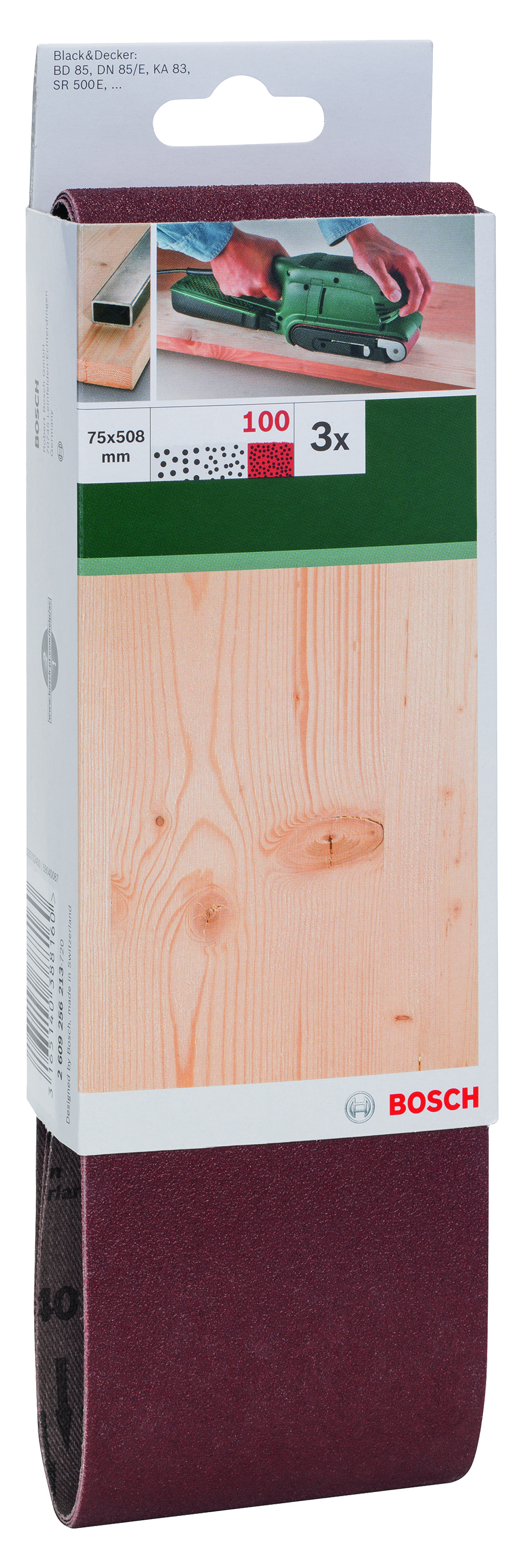 Emballage: 3Marque: BoschRéférence: 2609256213EAN: 3165140388160Description: PONÇAGE MP (BANDE ABRASIVE 75X508 MM , G100, RW, NON PERF., FIXATION ÉTRIER (3))