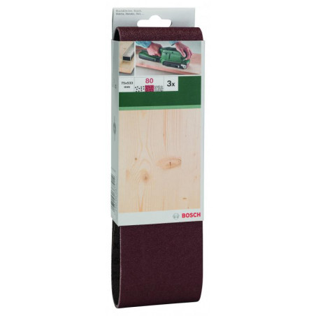 Emballage: 3Marque: BoschRéférence: 2609256218EAN: 3165140388214Description: PONÇAGE MP (BANDE ABRASIVE 75X533 MM , G80, RW, NON PERF., FIXATION ÉTRIER (3))