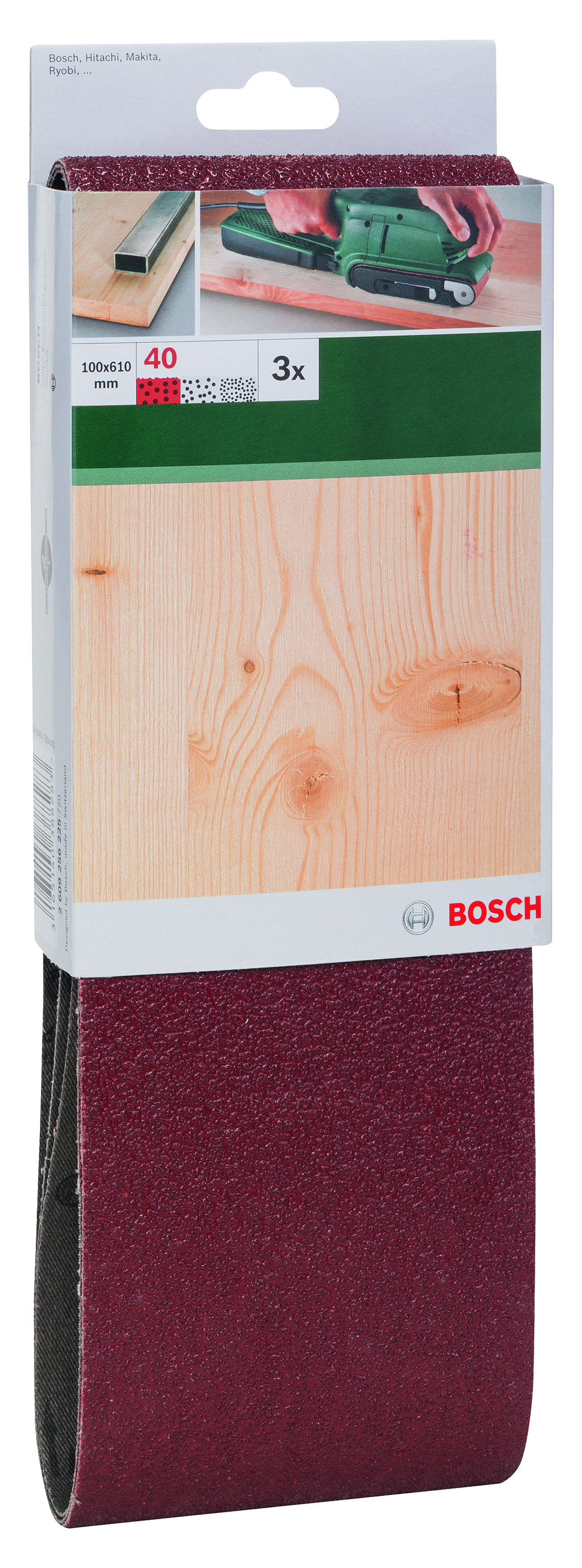 Emballage: 3Marque: BoschRéférence: 2609256225EAN: 3165140388283Description: PONÇAGE MP (BANDE ABRASIVE 100X610 MM , G40, RW, NON PERF., FIXATION ÉTRIER (3))