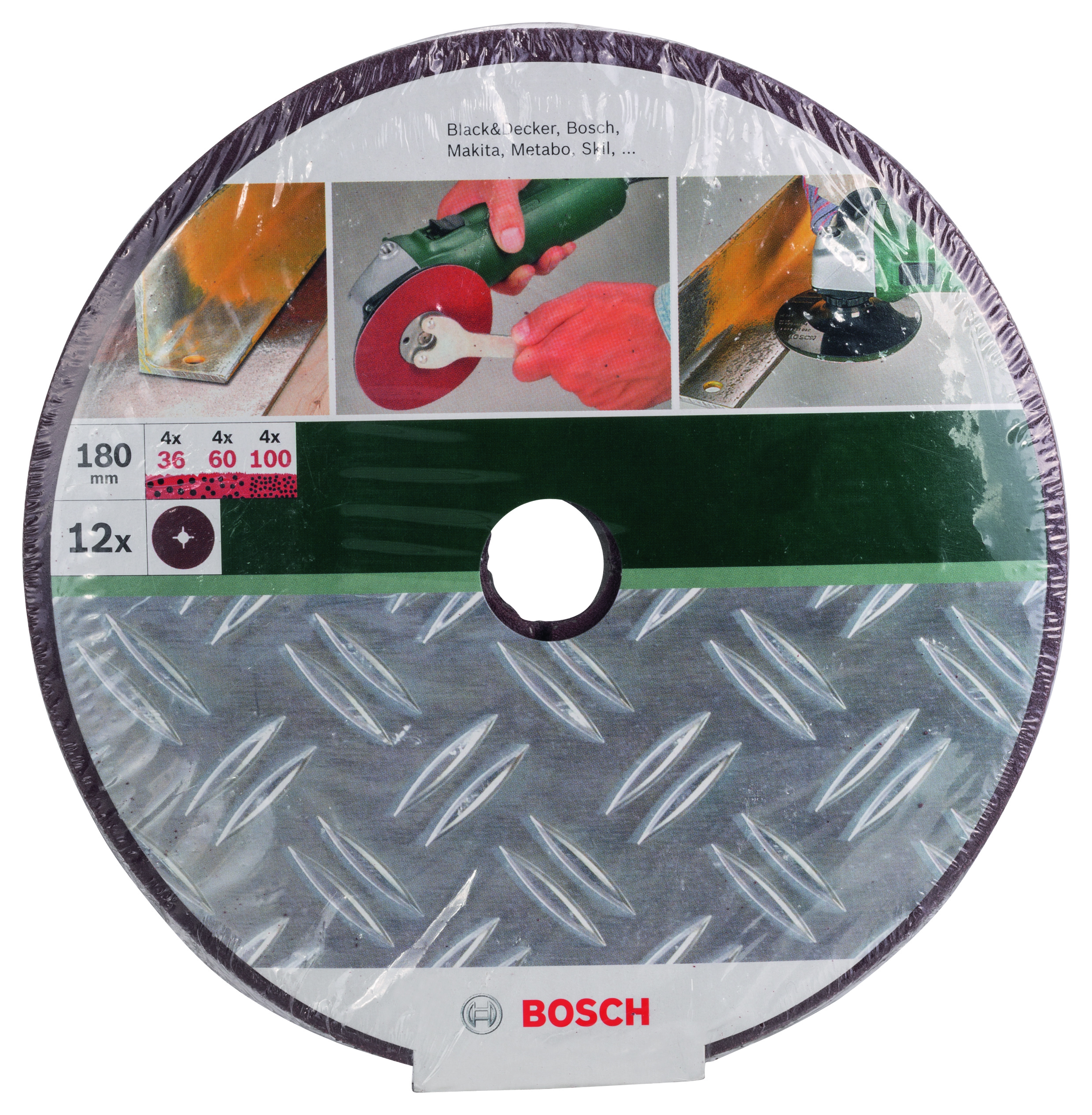 PONÇAGE MP (FIBRE SANDING DISCS Ø 180 MM, 4X G36/ 60/ 100, METAL, NON PERF., FIXATION ÉTRIER, (12))