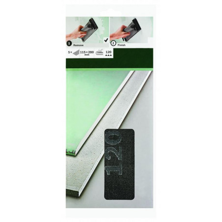 Emballage: 5Marque: BoschRéférence: 2609256357EAN: 3165140665339Description: PONÇAGE MP (Abrasifs platre et enduits 115x280mm K120)