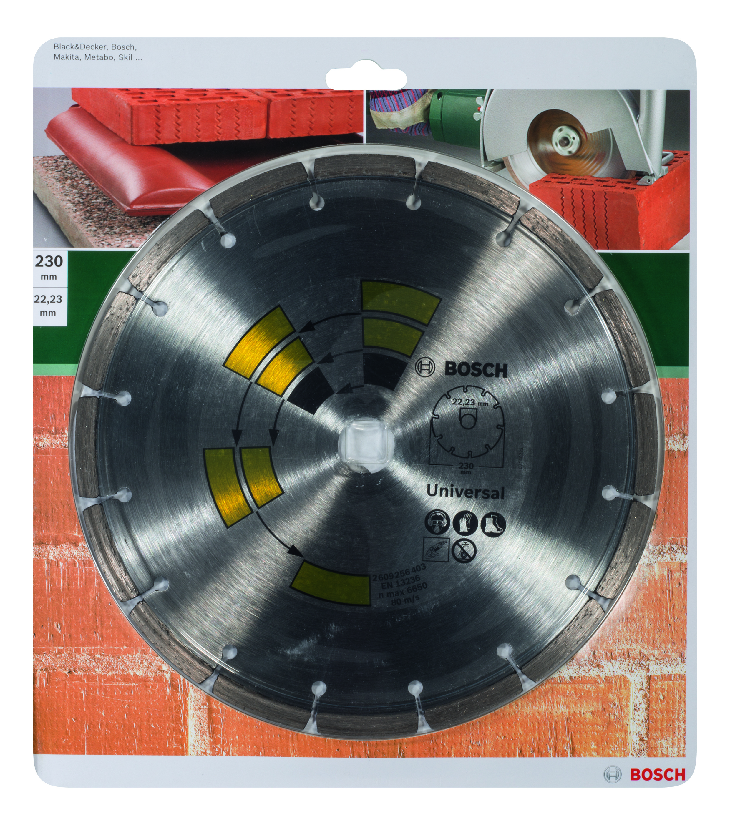 Emballage: 1Marque: BoschRéférence: 2609256403EAN: 3165140389013Description: DIAMANT MP (DISQUE DIAMANTÉS UNIVERSAL TOP , 230MM, 22.23)