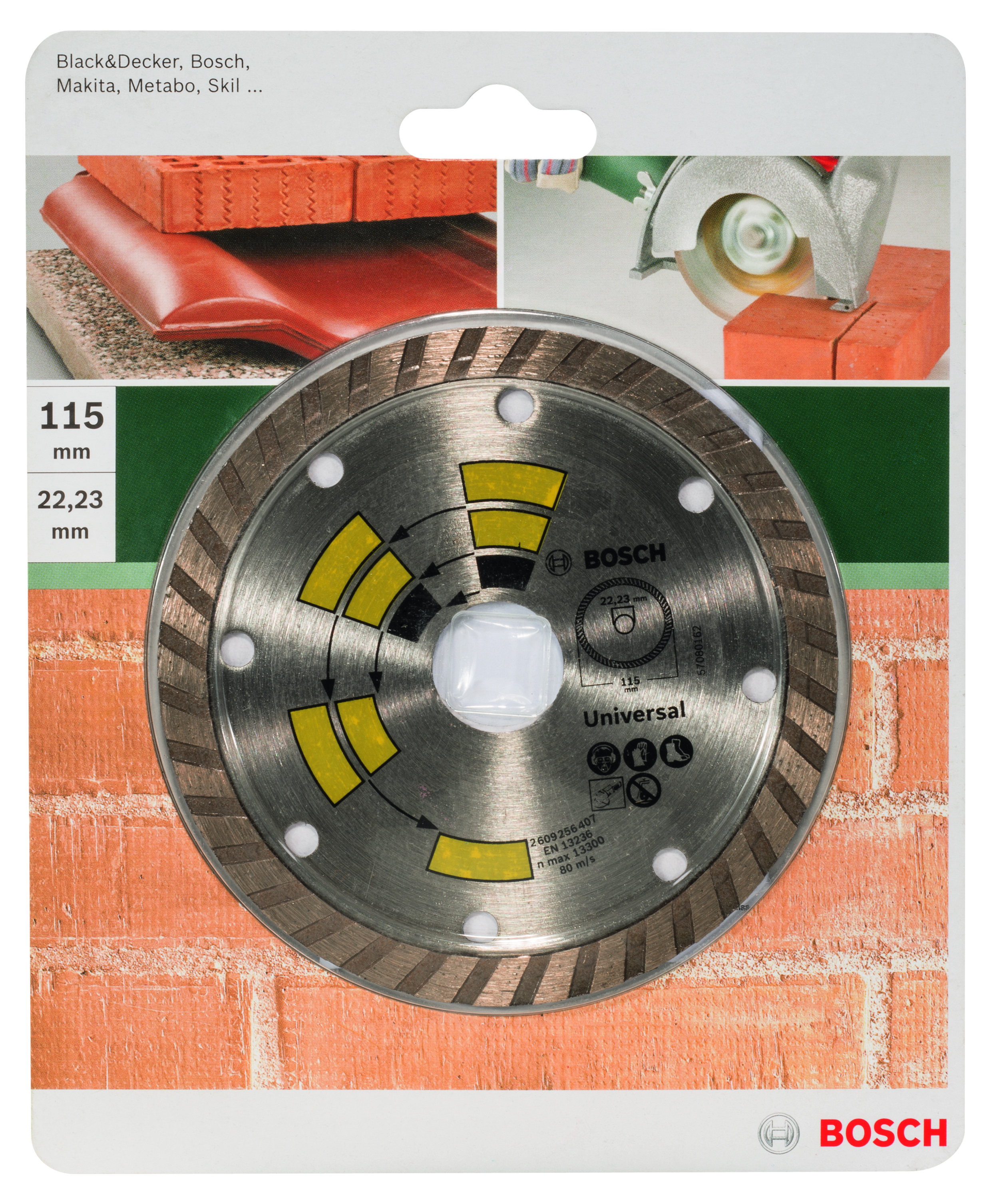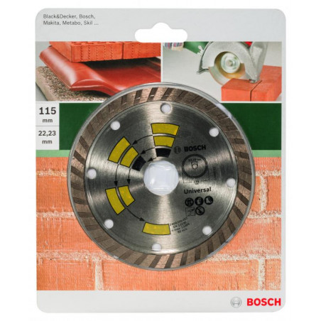 Emballage: 1Marque: BoschRéférence: 2609256407EAN: 3165140389051Description: DIAMANT MP (DISQUE DIAMANTÉS UNIVERSAL TURBO TOP , 115MM, 22.23)