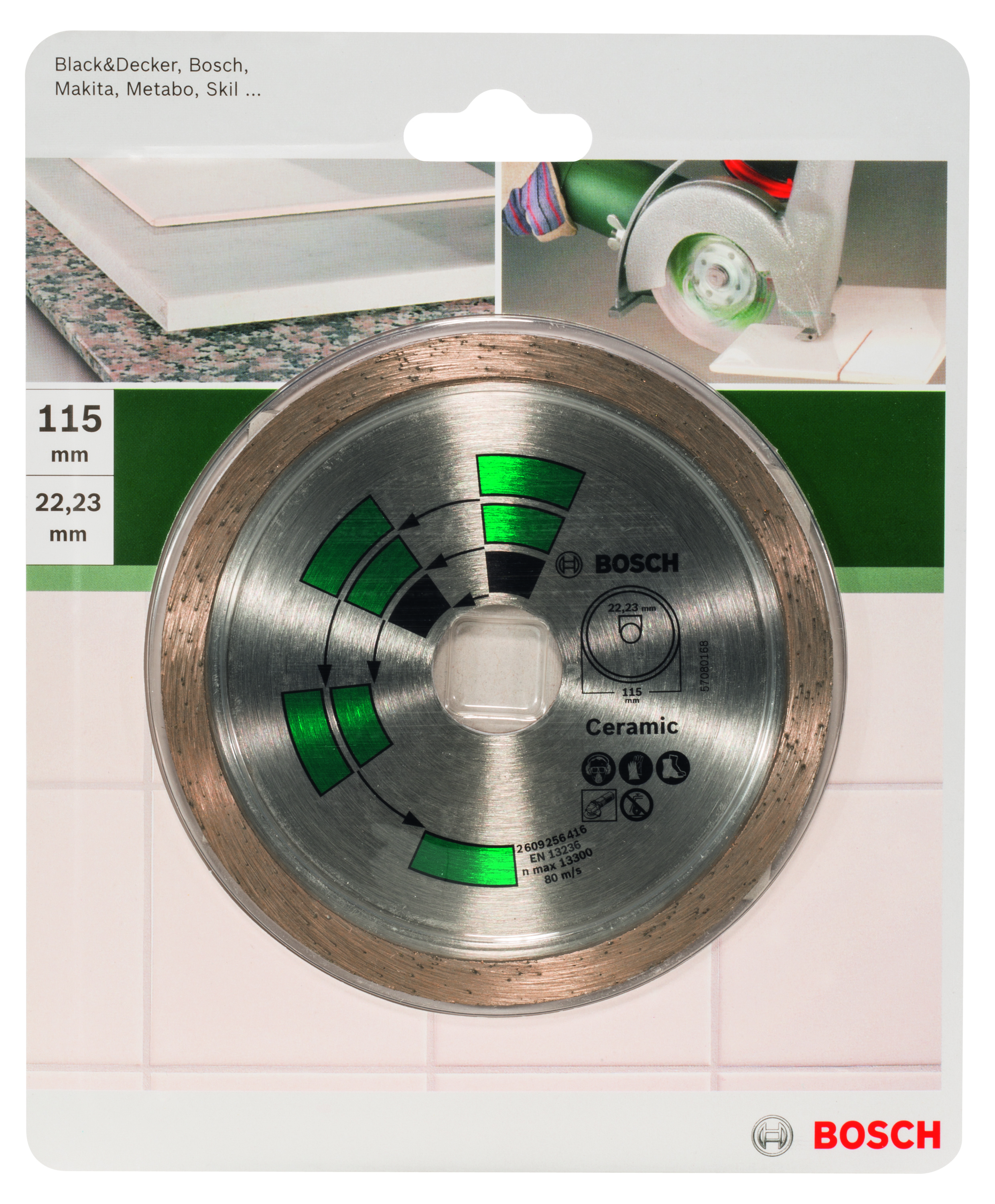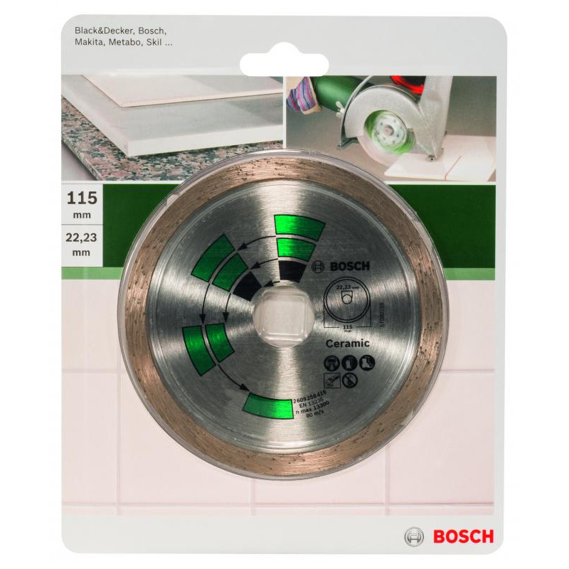 Emballage: 1Marque: BoschRéférence: 2609256416EAN: 3165140389143Description: DIAMANT MP (DISQUE DIAMANTÉS CARRELAGE, 115MM, 22.23)