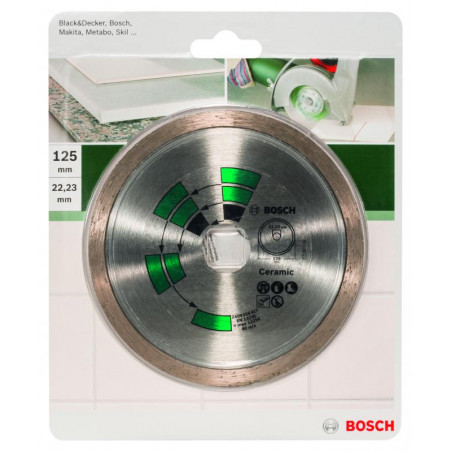 Emballage: 1Marque: BoschRéférence: 2609256417EAN: 3165140389150Description: DIAMANT MP (DISQUE DIAMANTÉS CARRELAGE, 125MM, 22.23)