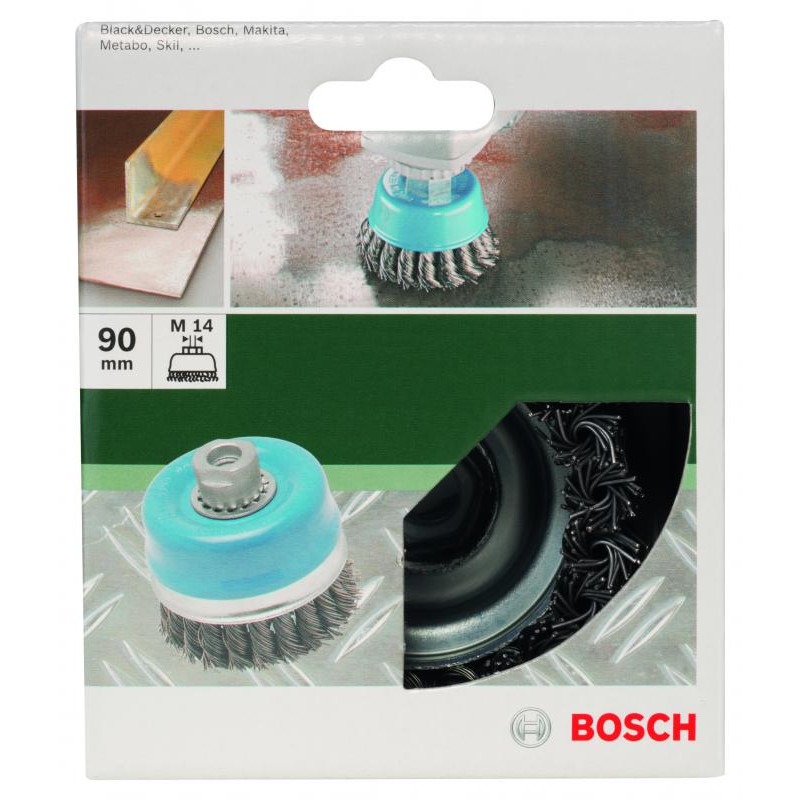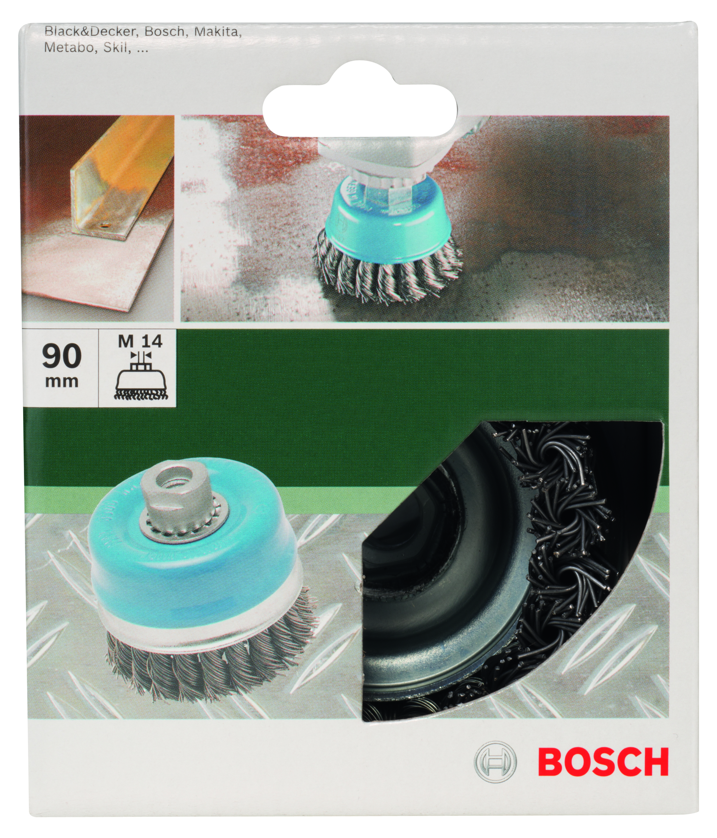 Emballage: 1Marque: BoschRéférence: 2609256506EAN: 3165140389259Description: BROSSES MP (BROSSE BOISSEAU A FILS TORSADÉS, , Ø 90 MM, M14 (1))