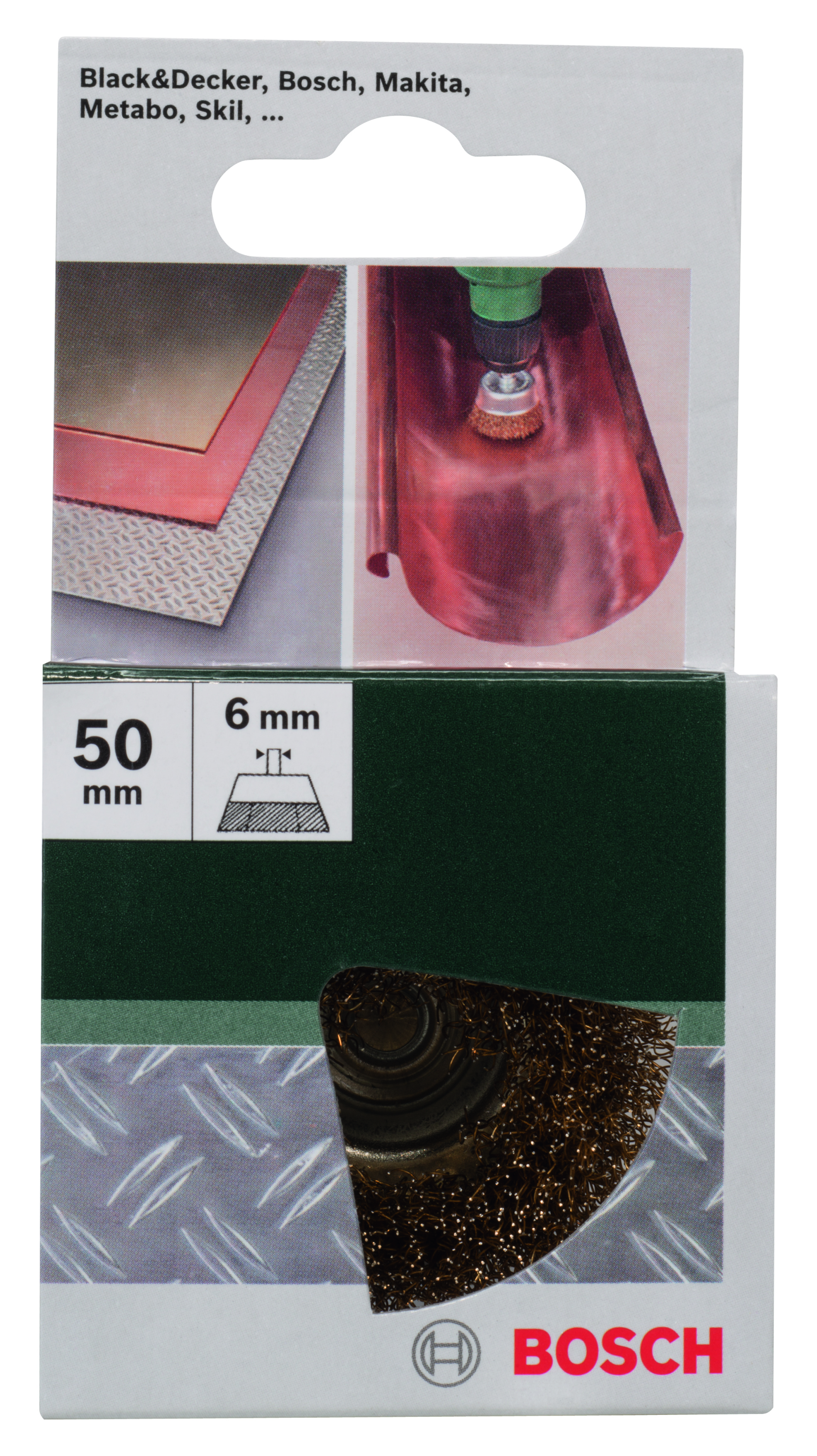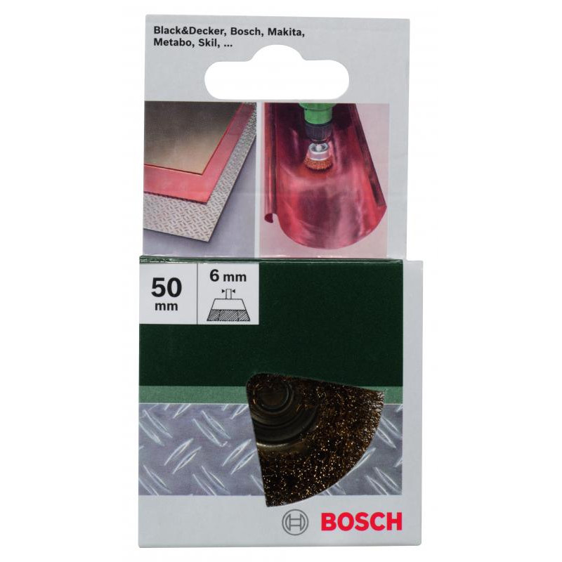 Emballage: 1Marque: BoschRéférence: 2609256516EAN: 3165140389358Description: BROSSES MP (BROSSE BOISSEAU A FILS ONDULÉS, LAITONNÉ, Ø 50 MM, 6 MM, (1))
