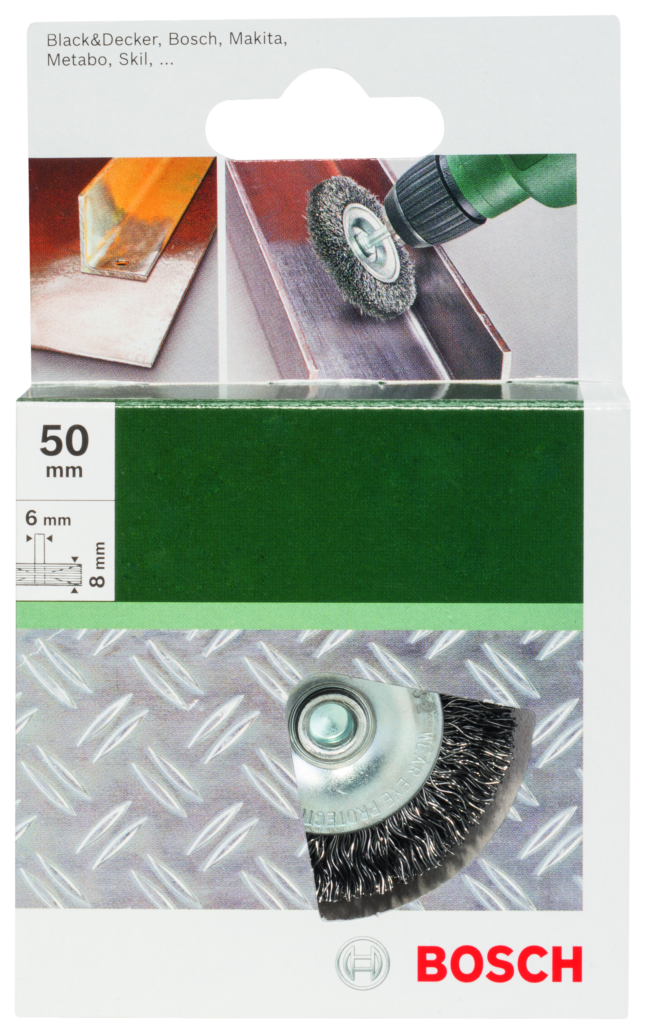 Emballage: 1Marque: BoschRéférence: 2609256526EAN: 3165140389457Description: BROSSES MP (BROSSE CIRCULAIRE A FILS ONDULÉS, , Ø 50 MM , 6 MM, (1))