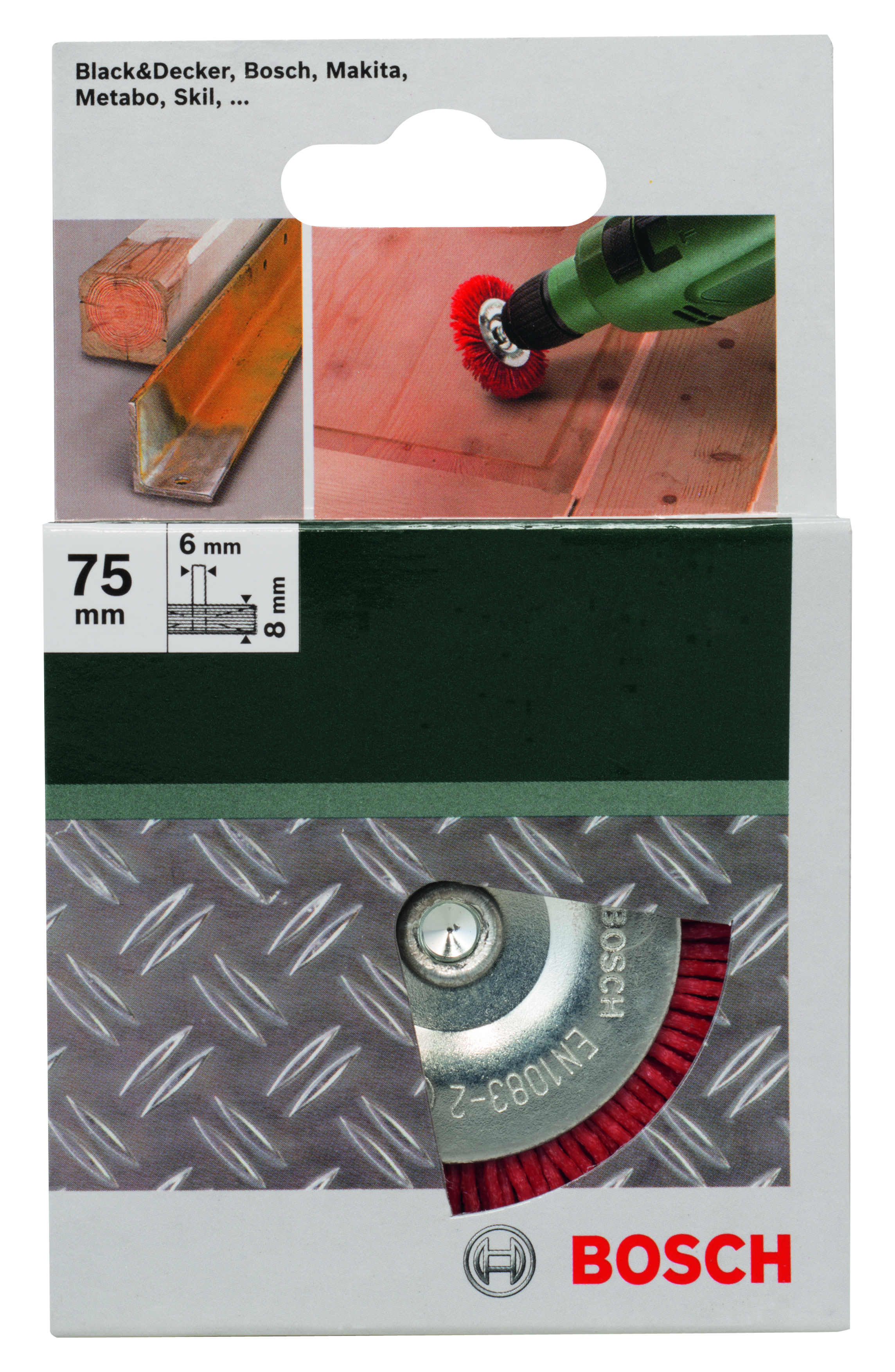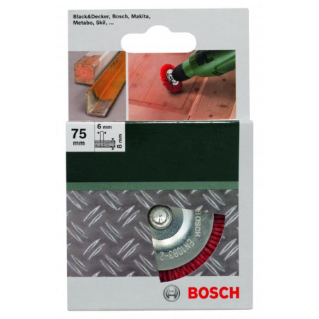 Emballage: 1 Marque: Bosch Référence: 2609256535 EAN: 3165140389549 Description: BROSSES MP (BROSSE CIRCULAIRE A FILS EN NYLON, SIC , Ø 75 MM, 6 MM (1))