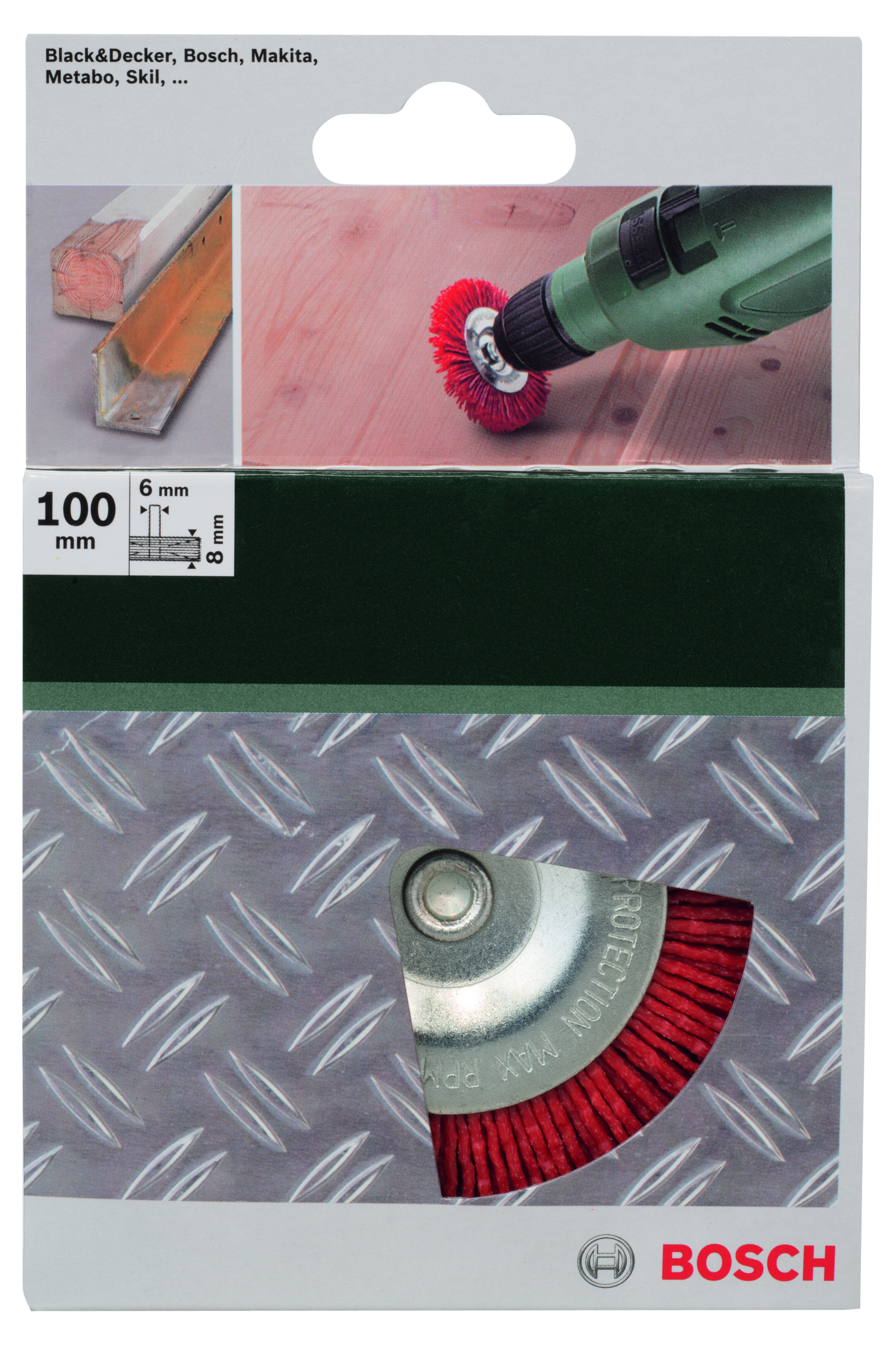 Emballage: 1 Marque: Bosch Référence: 2609256537 EAN: 3165140389563 Description: BROSSES MP (BROSSE CIRCULAIRE A FILS EN NYLON, SIC, Ø 100 MM, 6 MM, (1))