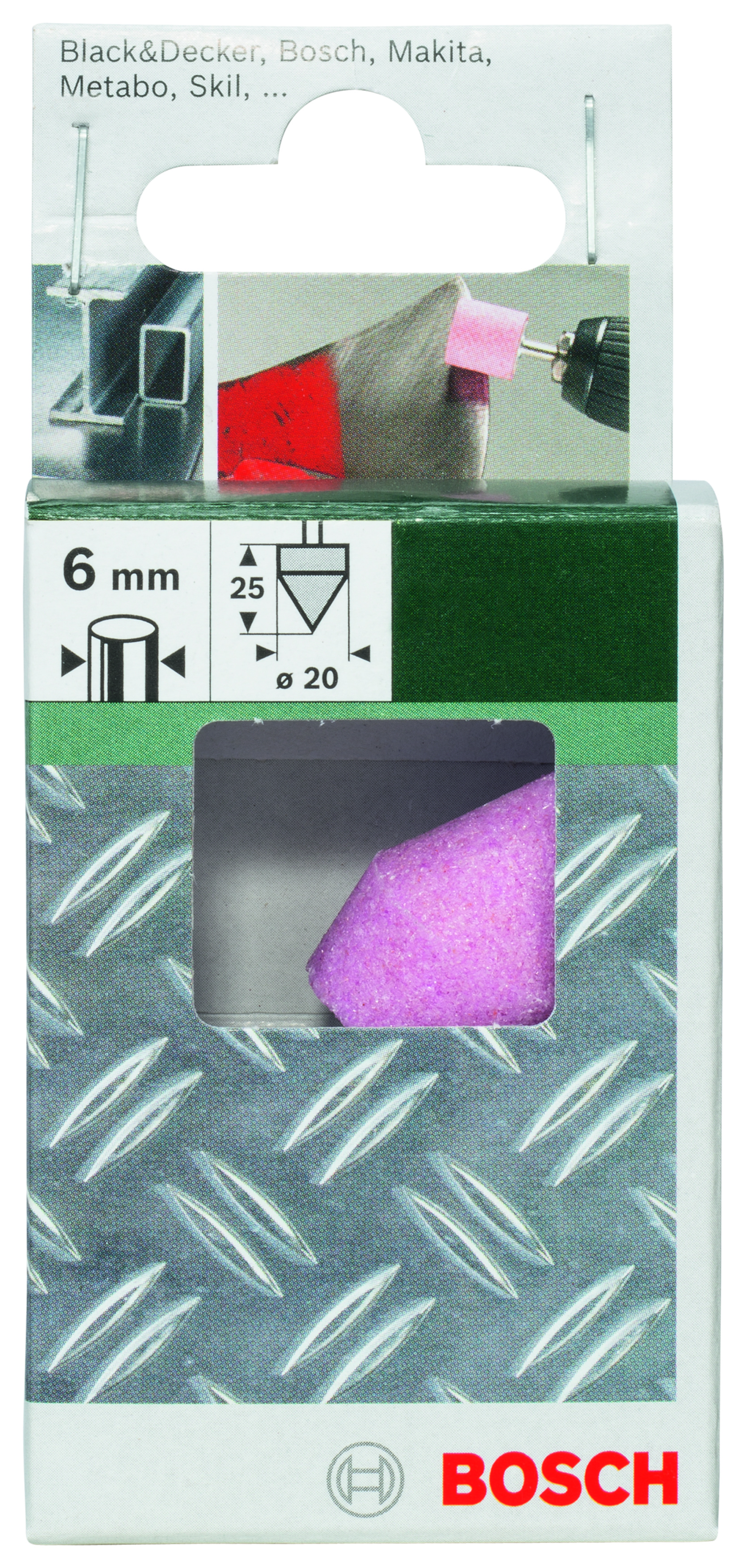 Emballage: 1Marque: BoschRéférence: 2609256548EAN: 3165140389679Description: BROSSES MP (MEULE SUR TIGE - TAPERED 6 MM, 60 MM, 20, 25, (1))