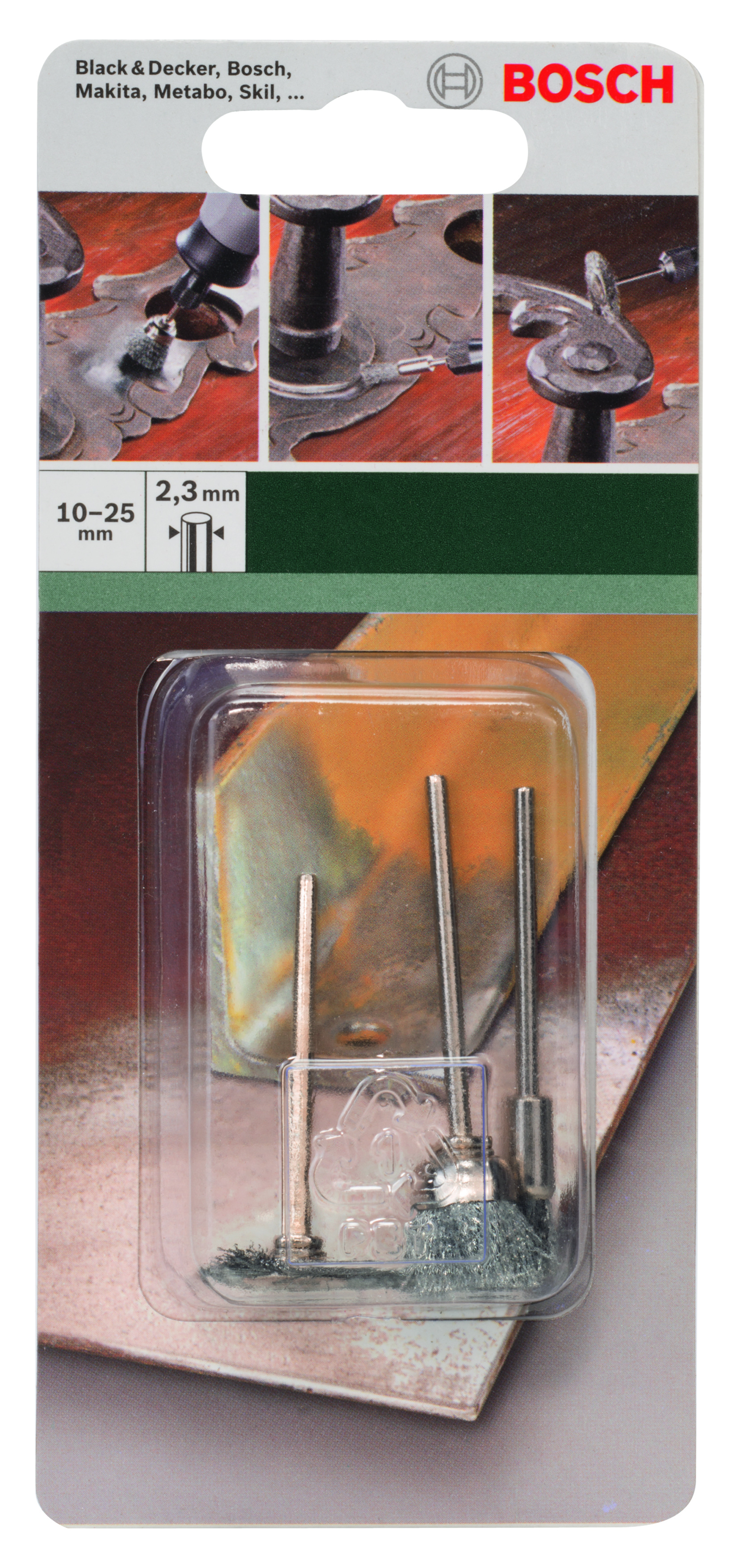 Emballage: 1Marque: BoschRéférence: 2609256554EAN: 3165140608930Description: BROSSES MP (Set des mini brosses de 3 pièces)