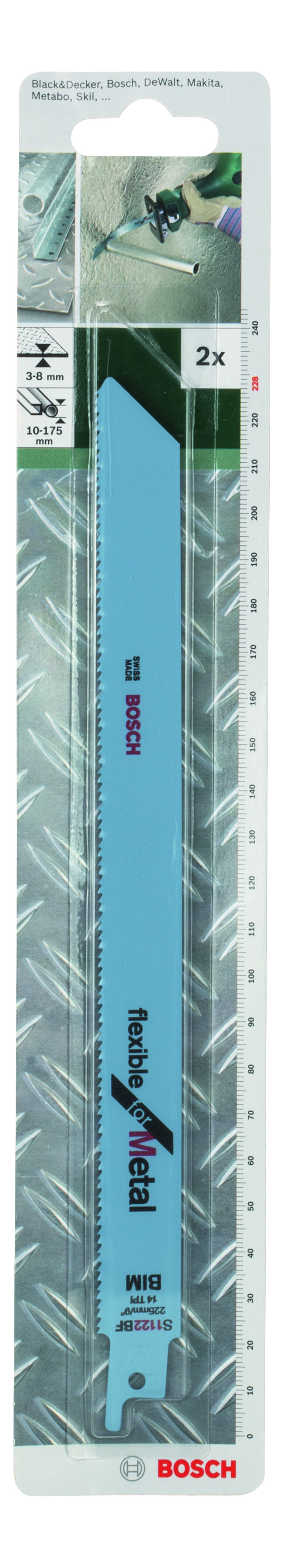 Emballage: 2Marque: BoschRéférence: 2609256707EAN: 3165140390644Description: LAMES SCIES SAUT./EGOÏNE MP (LAME DE SCIE SABRE BIM, S 1122 BF, 228 MM , 1,8 / 14)