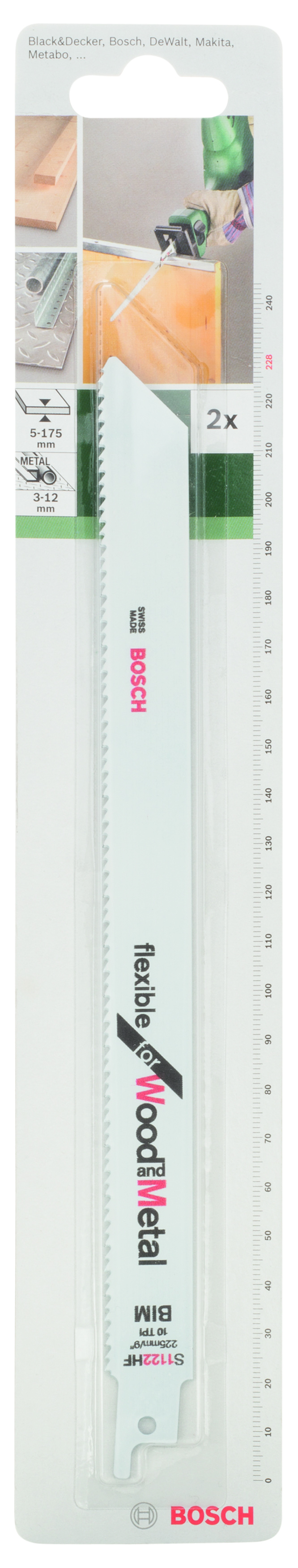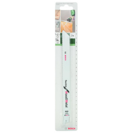 Emballage: 2Marque: BoschRéférence: 2609256709EAN: 3165140390668Description: LAMES SCIES SAUT./EGOÏNE MP (LAME DE SCIE SABRE BIM, S 1122 HF, 228 MM , 2,5 / 10)