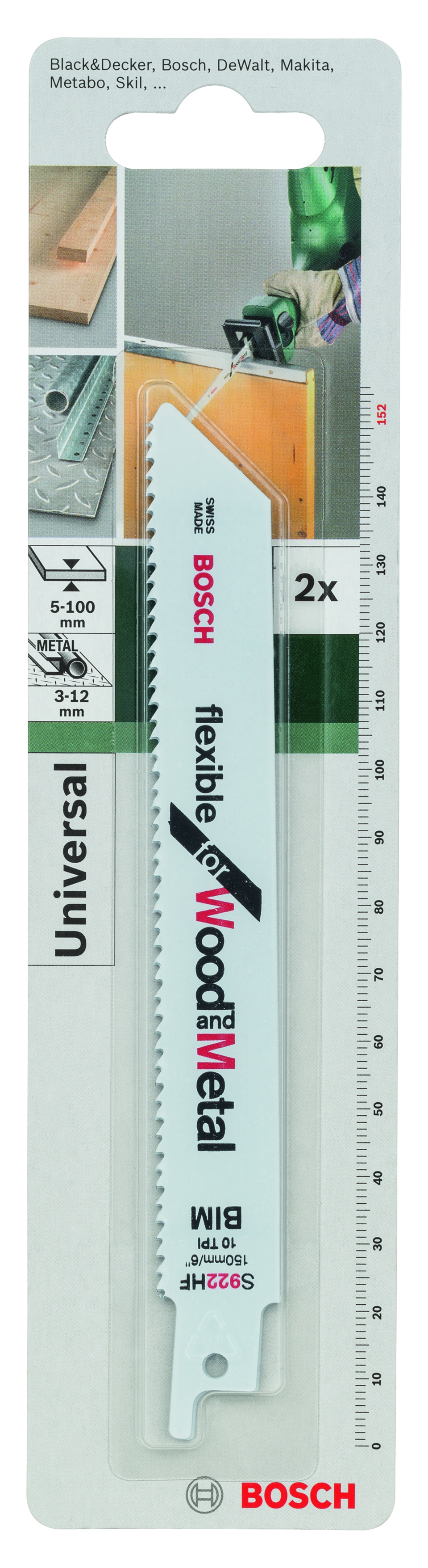 Emballage: 2Marque: BoschRéférence: 2609256711EAN: 3165140390682Description: LAMES SCIES SAUT./EGOÏNE MP (LAME DE SCIE SABRE BIM, S 922 HF, 150 MM , 2,5 / 10)