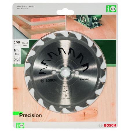 Emballage: 1Marque: BoschRéférence: 2609256852EAN: 3165140391986Description: LAMES SCIES CIRC. MP (LAME DE SCIE CIRCULAIRE PRECISION 150X2X20/16,D18 (1))