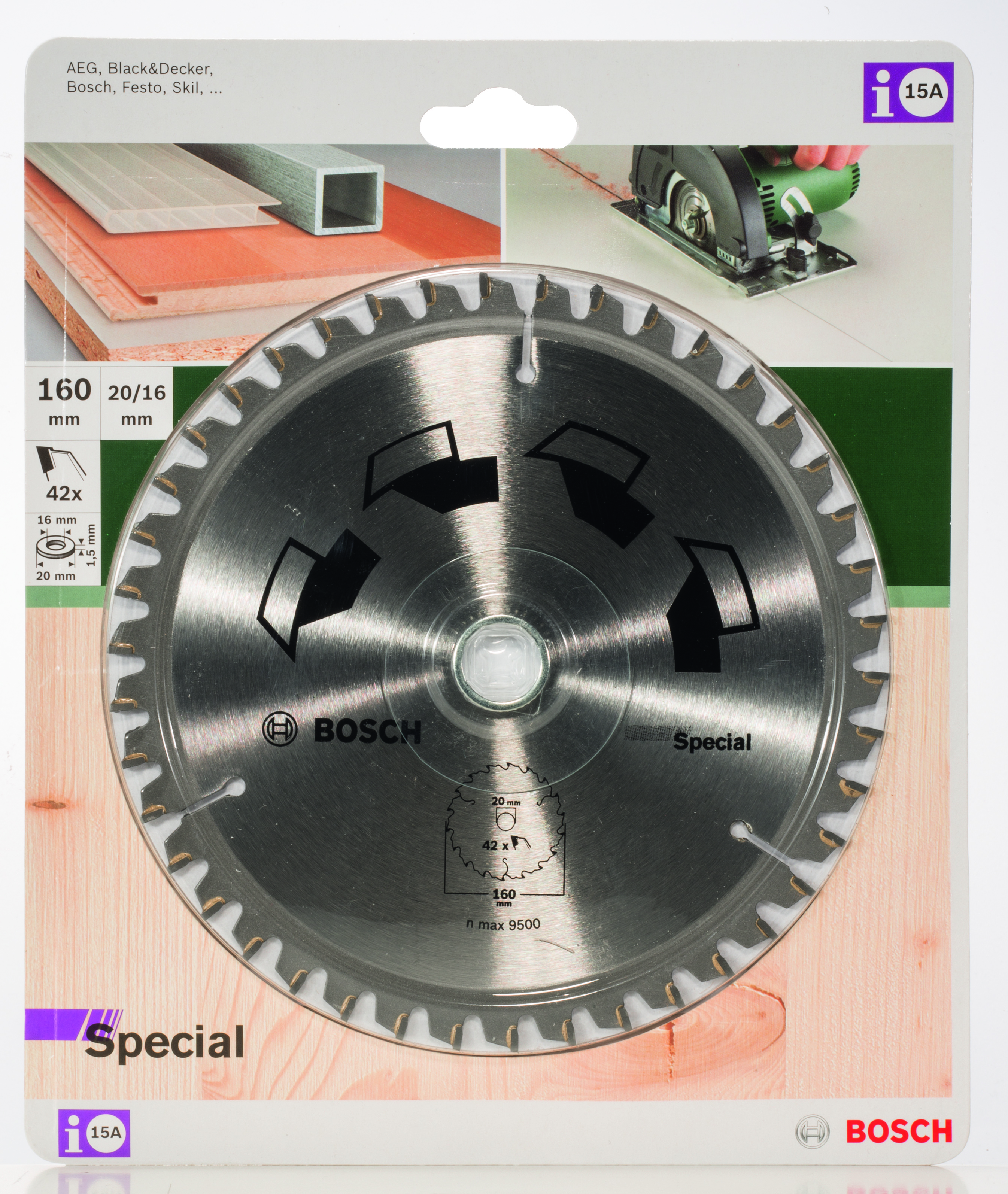 Emballage: 1Marque: BoschRéférence: 2609256887EAN: 3165140392334Description: LAMES SCIES CIRC. MP (LAME DE SCIE CIRCULAIRE SPECIAL 160X2X20/16,D42 (1))
