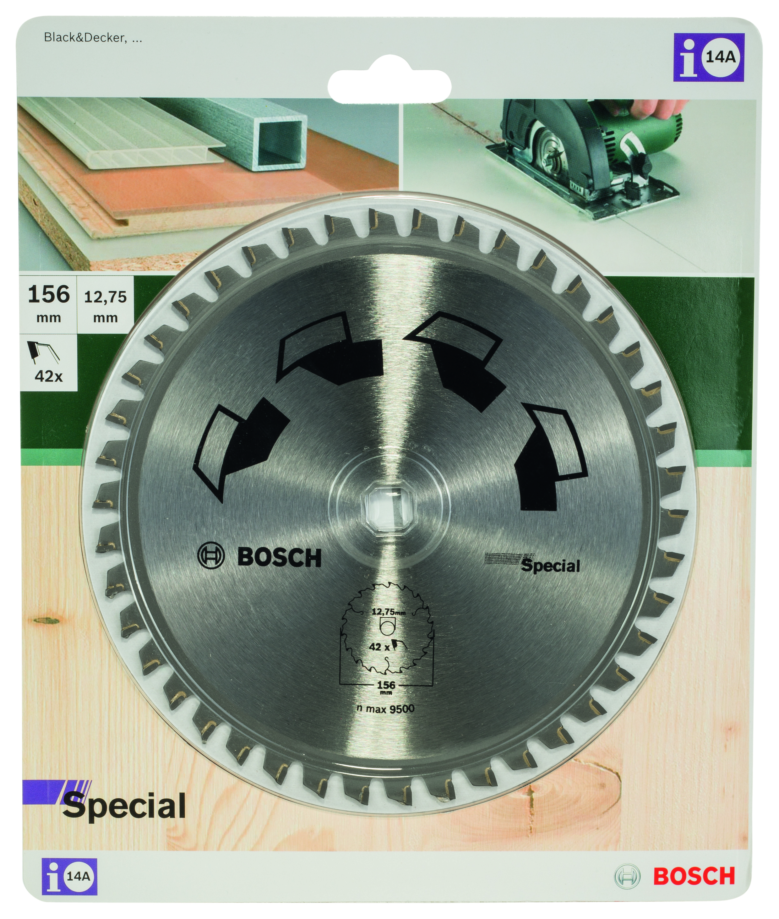 Emballage: 1Marque: BoschRéférence: 2609256898EAN: 3165140392440Description: LAMES SCIES CIRC. MP (LAME DE SCIE CIRCULAIRE SPECIAL 156X2X12.7/-,D42 (1))