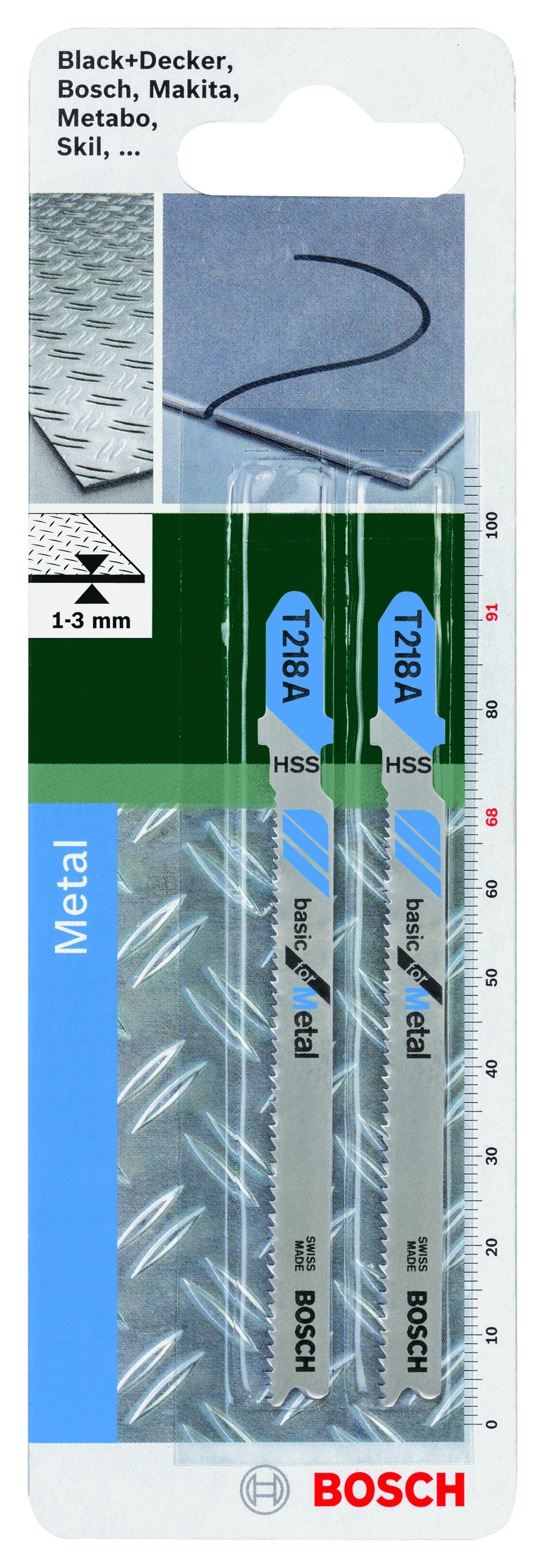 Emballage: 2Marque: BoschRéférence: 2609256962EAN: 3165140531214Description: LAMES SCIES SAUT./EGOÏNE MP (Lame de scie sateuse T 218 A HSS (2))