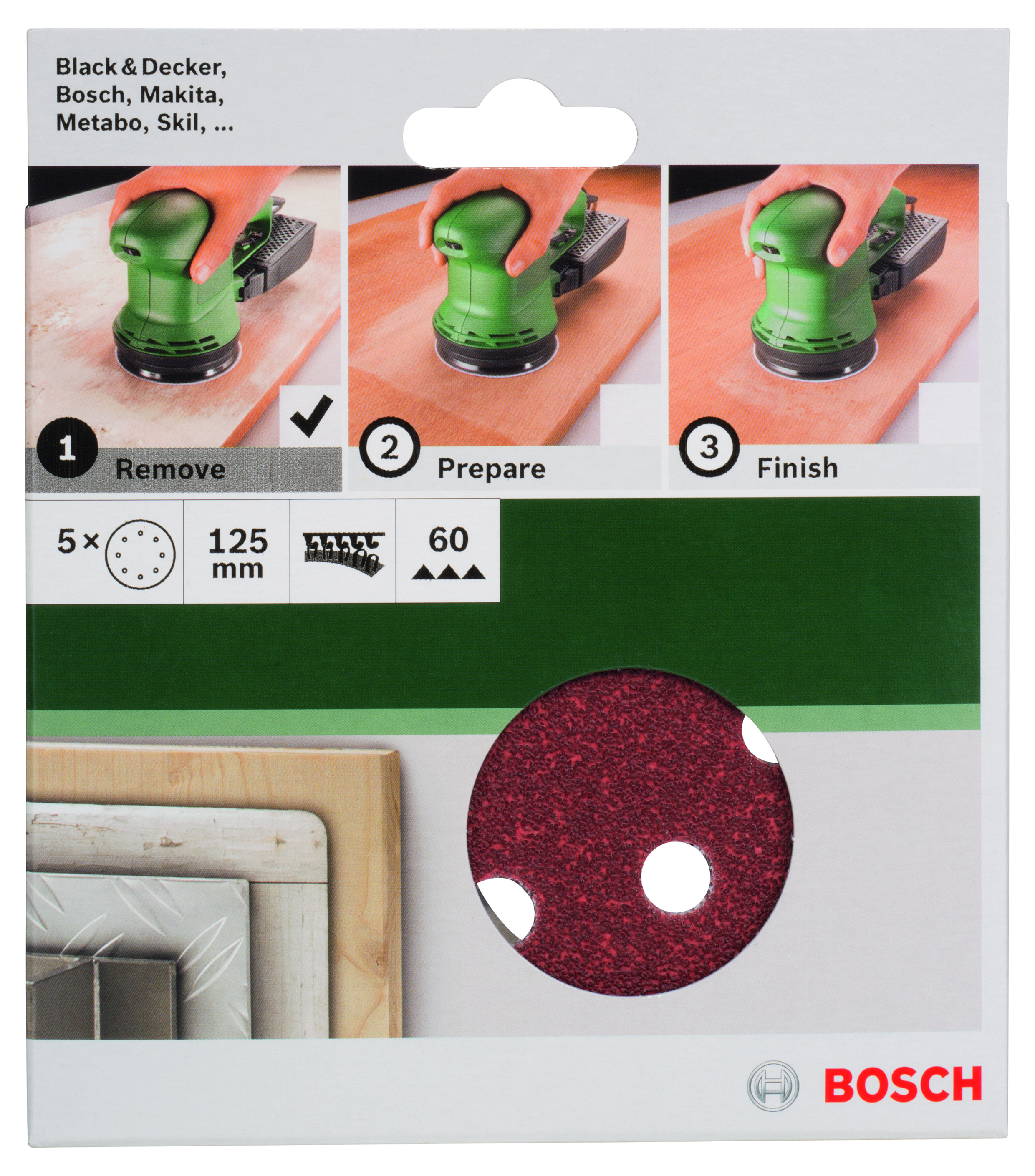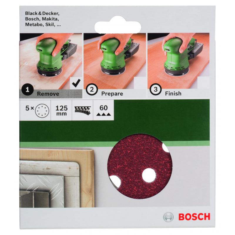 Emballage: 5Marque: BoschRéférence: 2609256A23EAN: 3165140614399Description: PONÇAGE MP (FEUILLE ABRASIVE Ø 125 MM, G60, WP, 8 TROUS, VELCRO (5))
