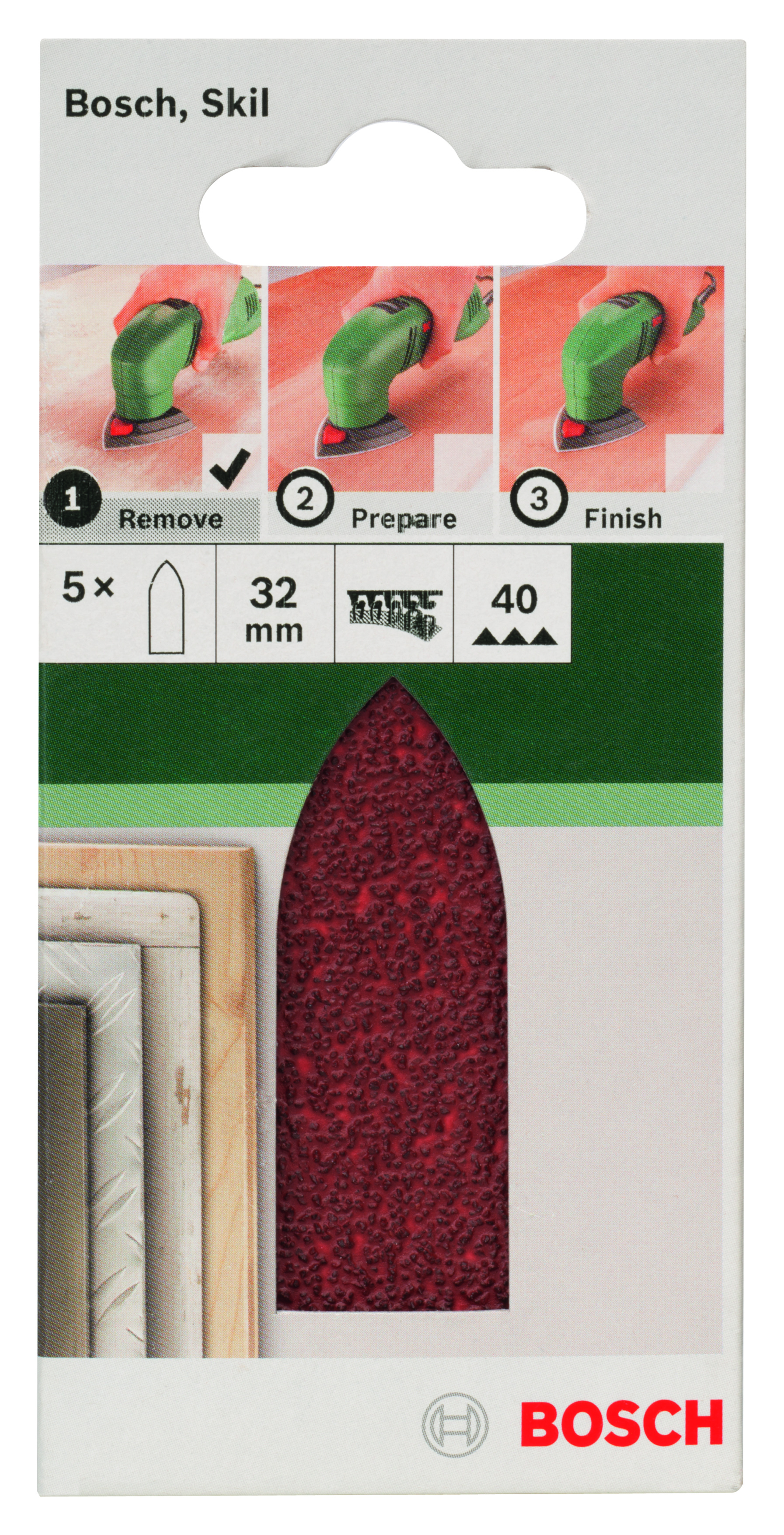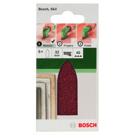 Emballage: 5Marque: BoschRéférence: 2609256A36EAN: 3165140614528Description: PONÇAGE MP (LANGUETTE DE PONCAGE 32 MM, G40, RW, NON PERF., VELCRO (5))