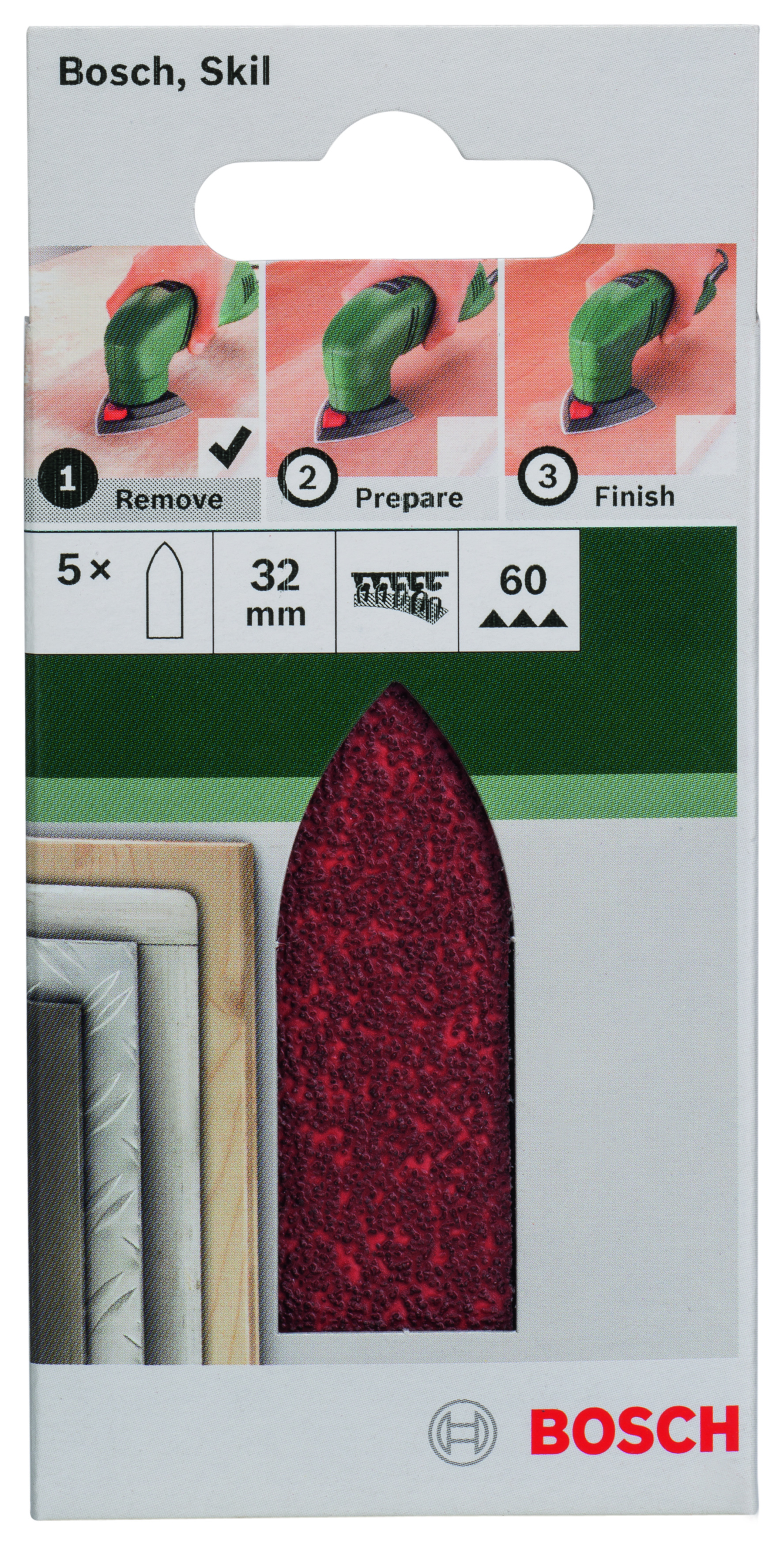 Emballage: 5Marque: BoschRéférence: 2609256A37EAN: 3165140614535Description: PONÇAGE MP (LANGUETTE DE PONCAGE 32 MM, G60, RW, NON PERF., VELCRO (5))