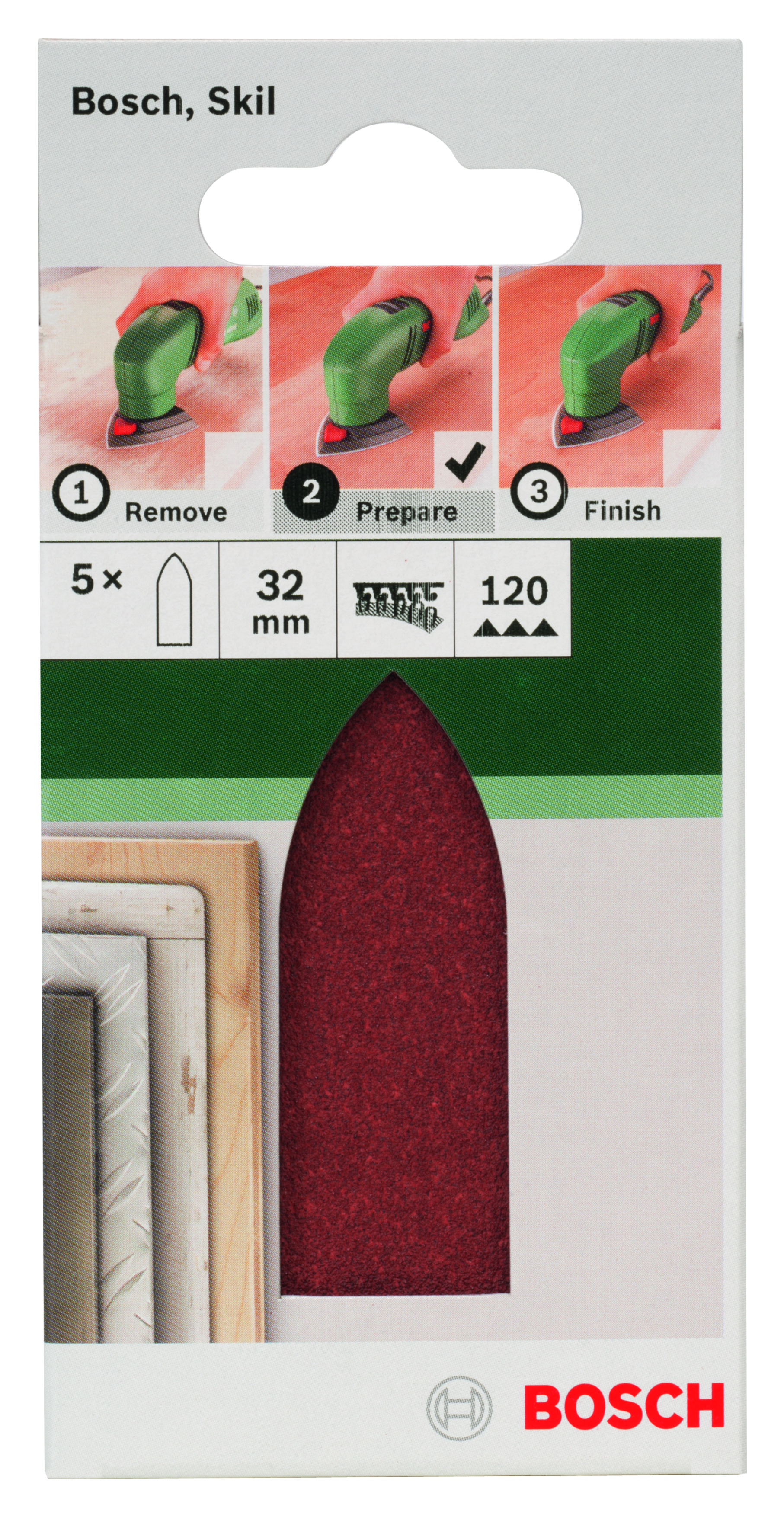 Emballage: 5Marque: BoschRéférence: 2609256A39EAN: 3165140614559Description: PONÇAGE MP (LANGUETTE DE PONCAGE 32 MM, G120, RW, NON PERF., VELCRO (5))