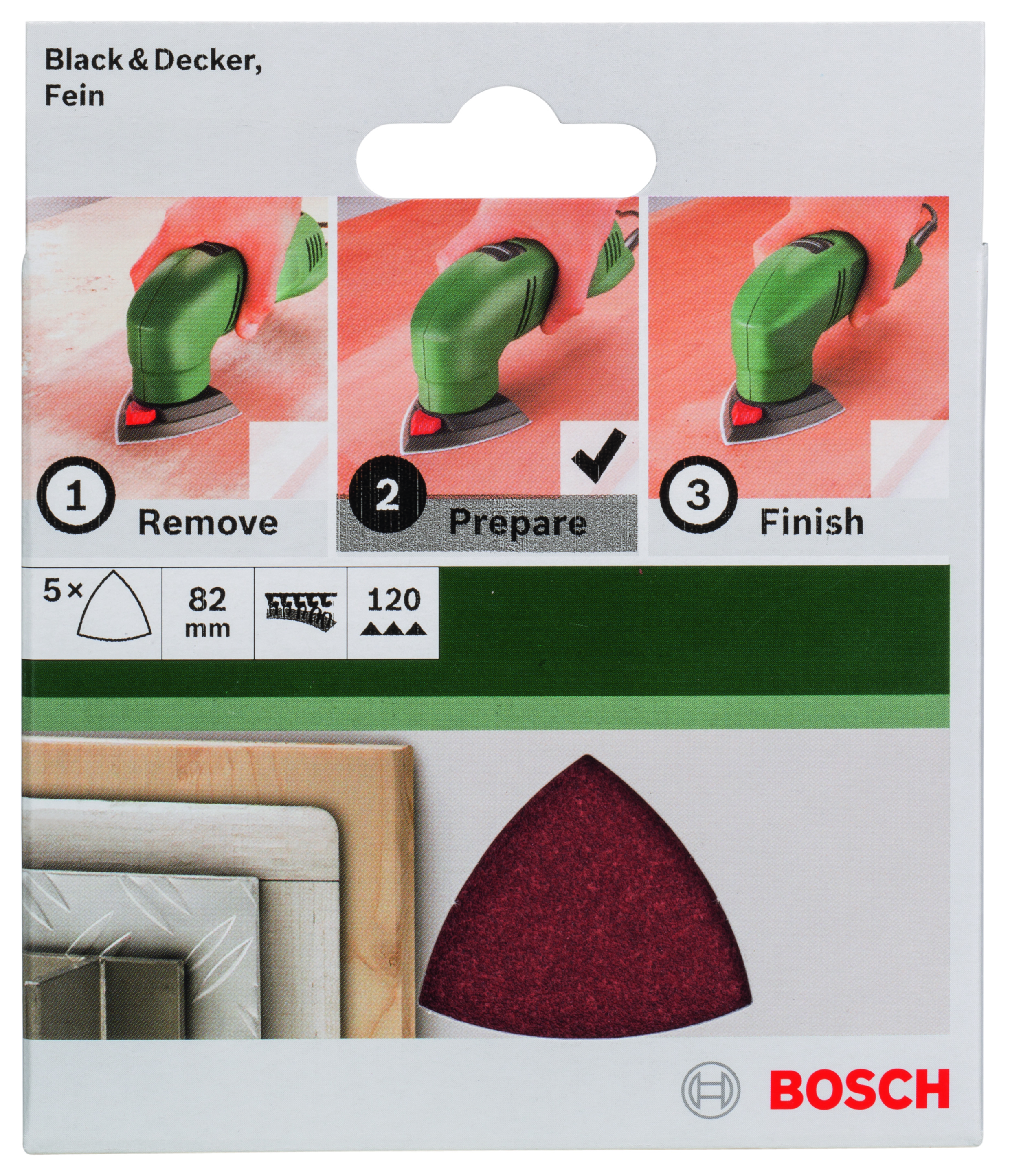 Emballage: 5Marque: BoschRéférence: 2609256A45EAN: 3165140614610Description: PONÇAGE MP (FEUILLE ABRASIVE 82 MM, G120, RW, NON PERF., VELCRO (5))
