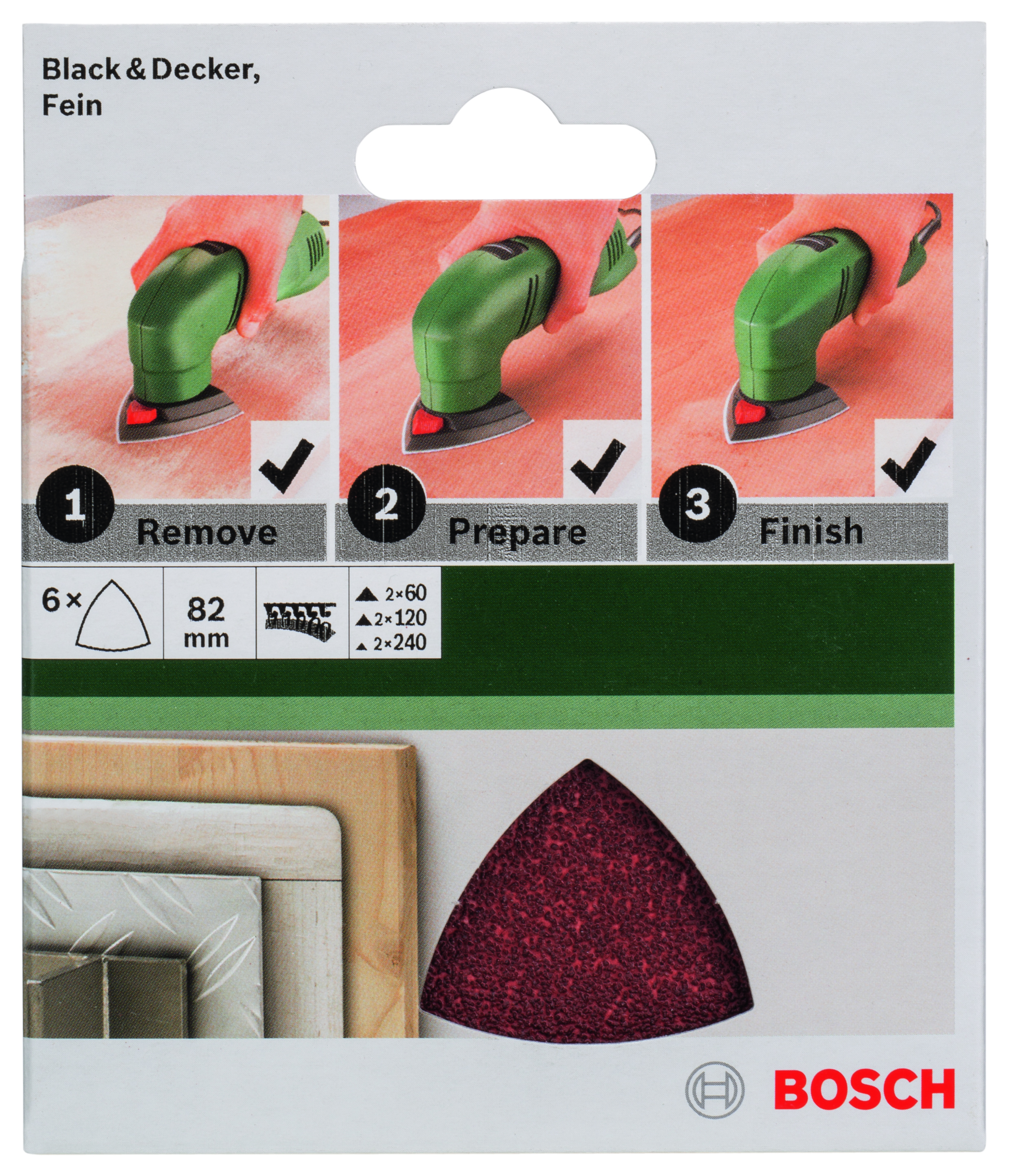 Emballage: 6Marque: BoschRéférence: 2609256A47EAN: 3165140614634Description: PONÇAGE MP (SET FEUILLE ABRASIVE 82 MM, RW, NON PERF., VELCRO (6))
