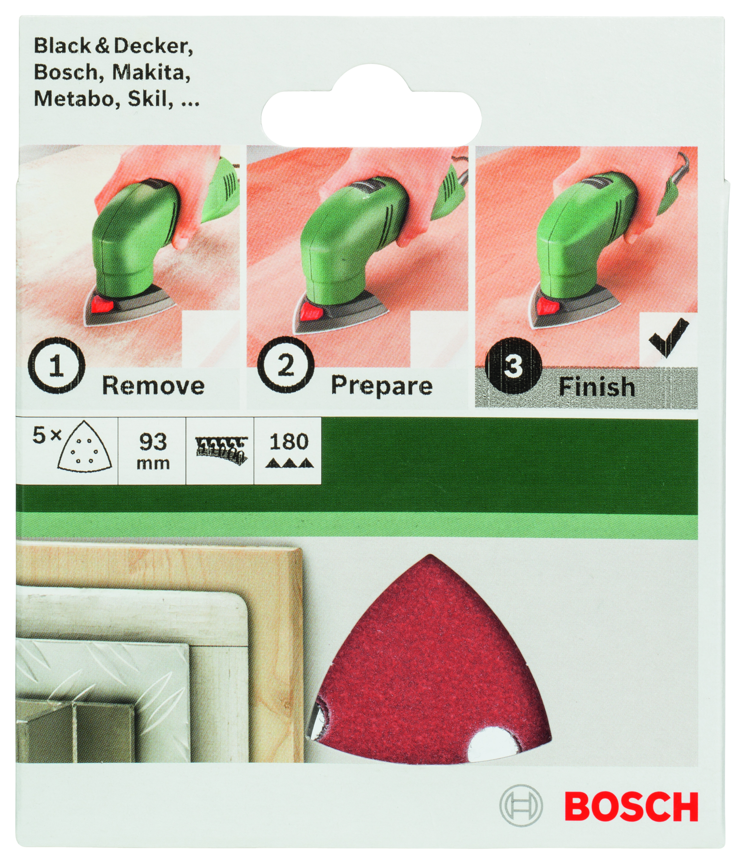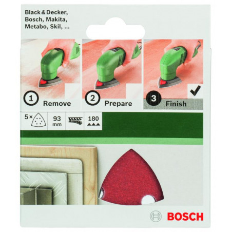 Emballage: 5Marque: BoschRéférence: 2609256A52EAN: 3165140614689Description: PONÇAGE MP (FEUILLE ABRASIVE 93 MM, G180, PAINT, 6 TROUS, VELCRO, (5))