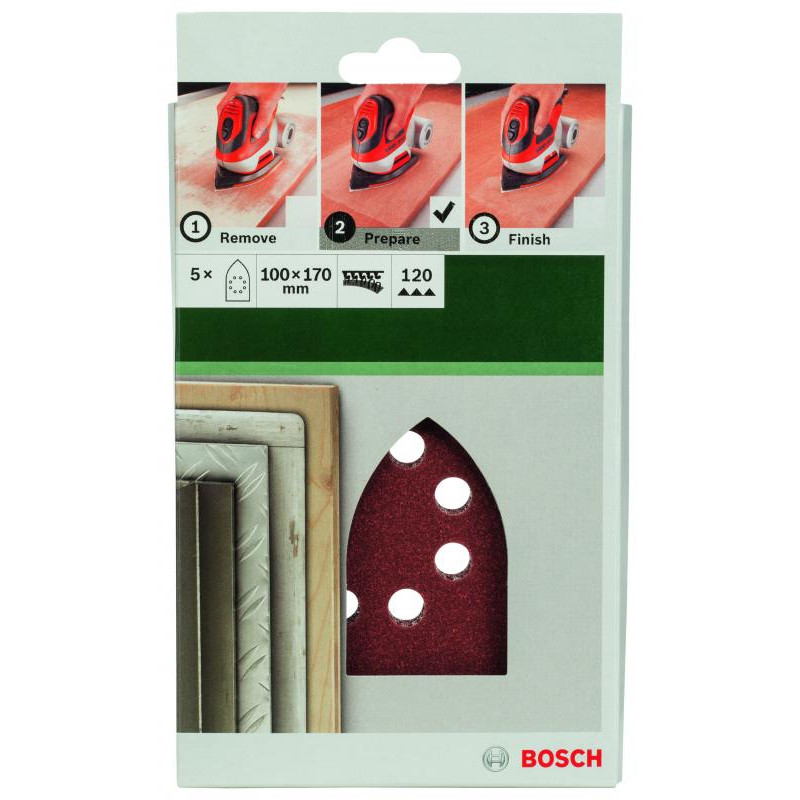 Emballage: 5Marque: BoschRéférence: 2609256A76EAN: 3165140614924Description: PONÇAGE MP (FEUILLE ABRASIVE 100X160 MM WITH EARS, G120, RW, 8 TROUS, VELCRO (5))