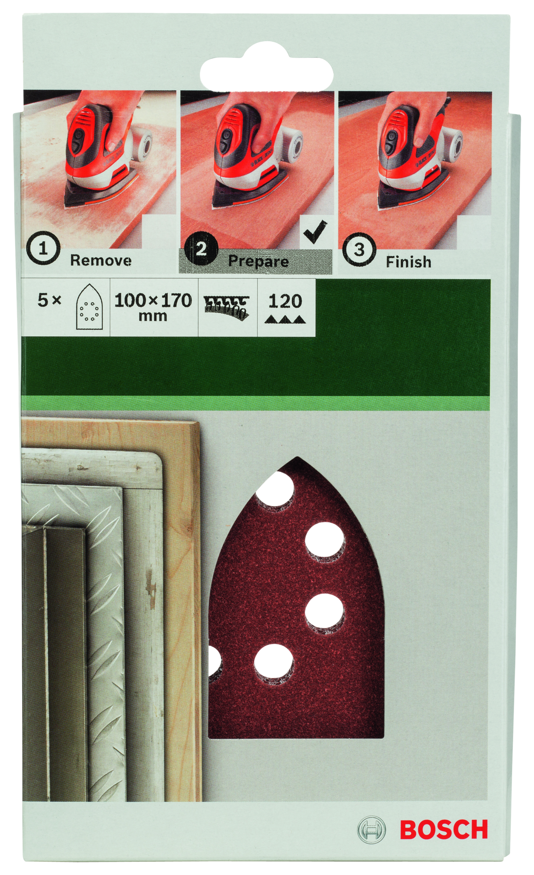 PONÇAGE MP (FEUILLE ABRASIVE 100X160 MM WITH EARS, G120, RW, 8 TROUS, VELCRO (5))