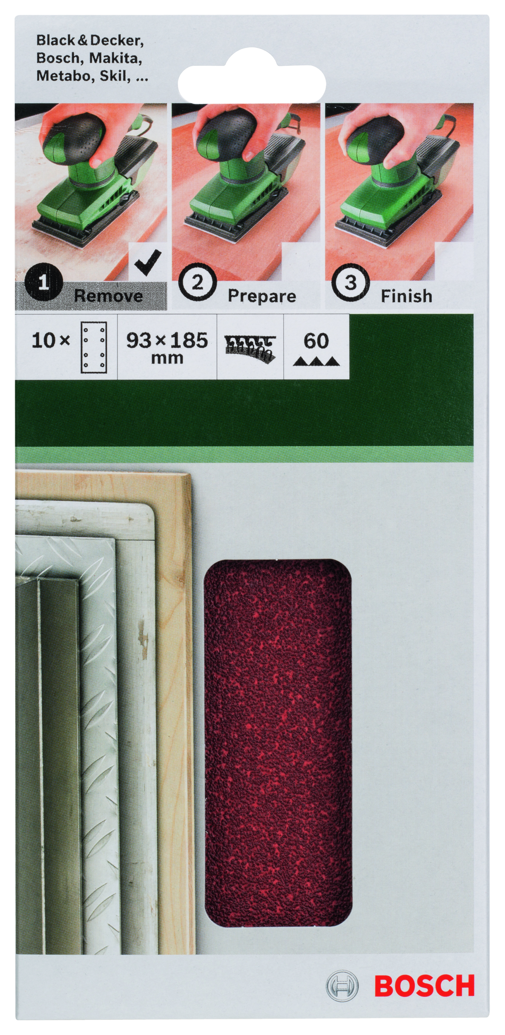 PONÇAGE MP (FEUILLE ABRASIVE 93X185 MM, G60, WP, 8 TROUS, VELCRO (10))