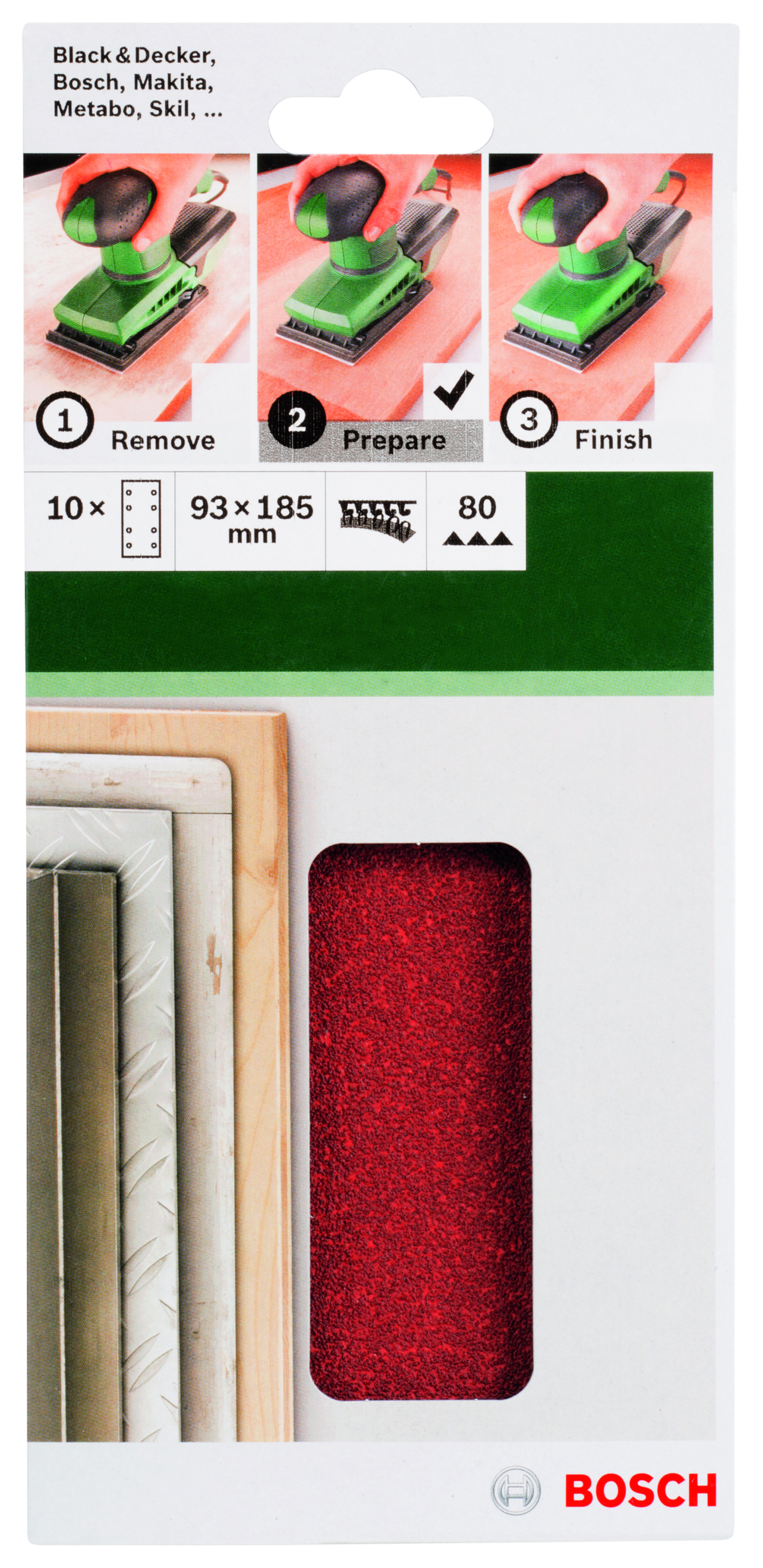 PONÇAGE MP (FEUILLE ABRASIVE 93X185 MM, G80, WP, 8 TROUS, VELCRO (10))