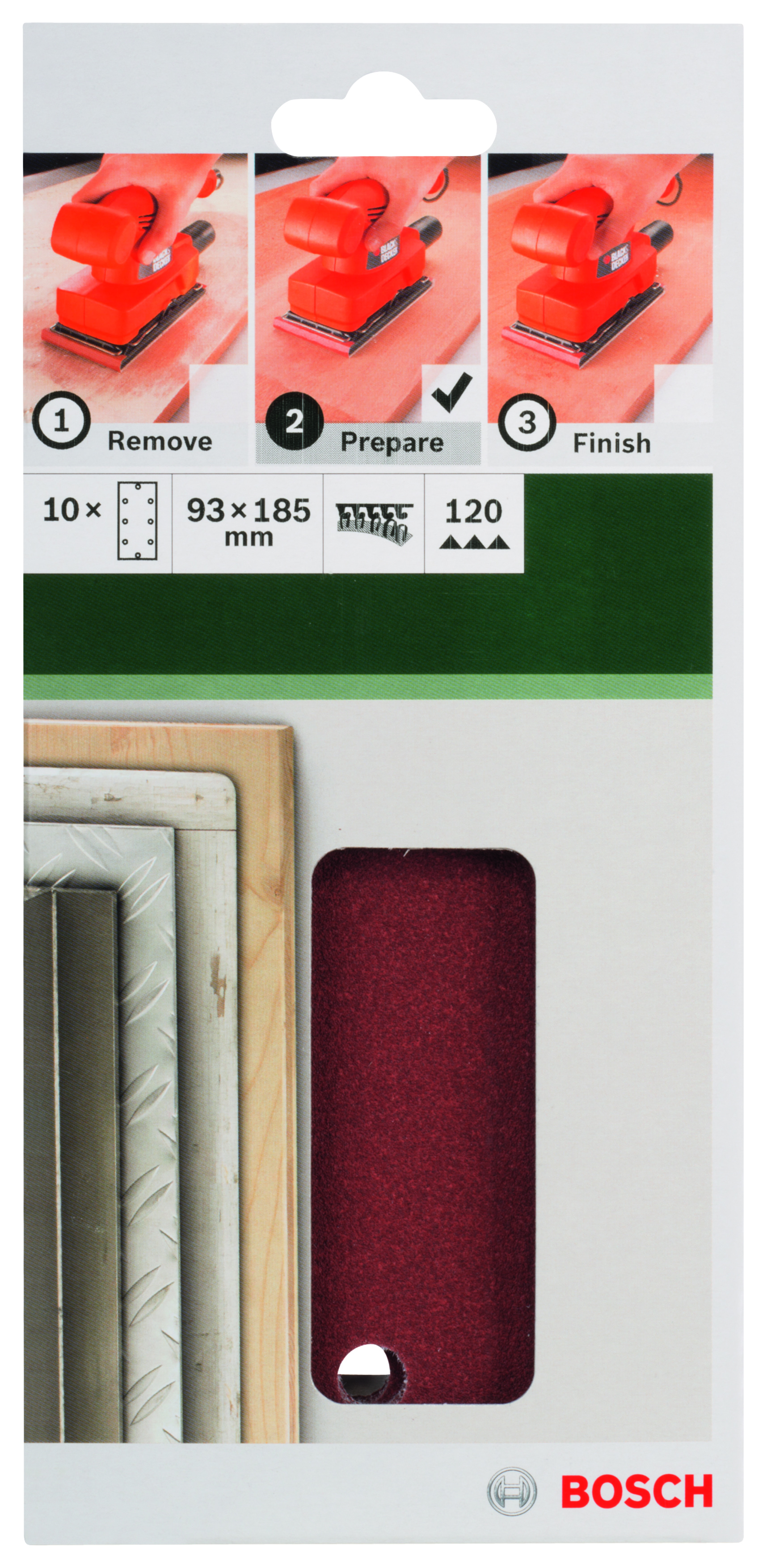 PONÇAGE MP (FEUILLE ABRASIVE 93X185 MM, G120, RW, 8 TROUS, VELCRO (10))