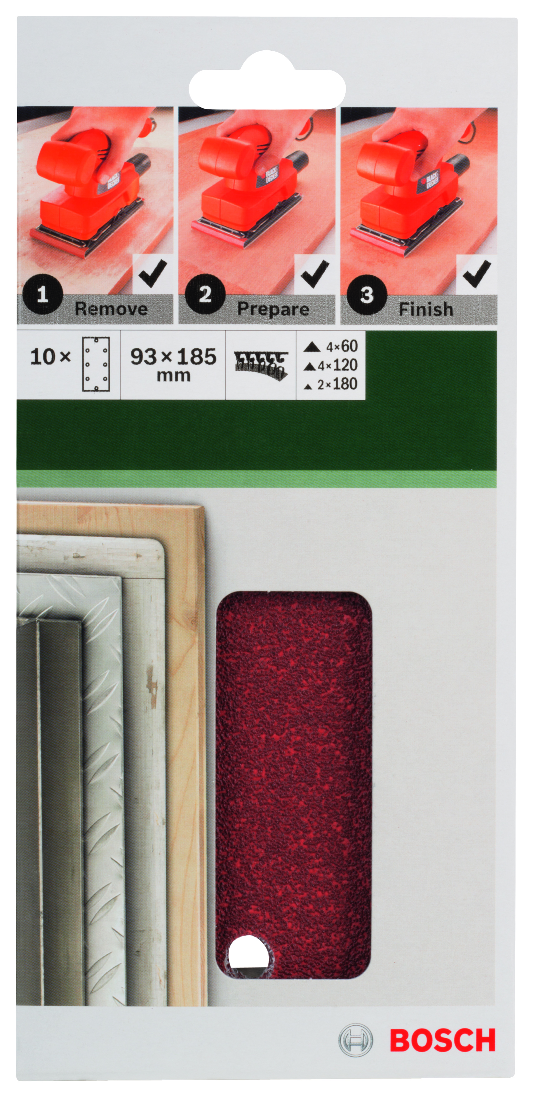 Emballage: 10Marque: BoschRéférence: 2609256A93EAN: 3165140615099Description: PONÇAGE MP (SET FEUILLE ABRASIVE 93X185 MM, RW, 8 TROUS, VELCRO (10))