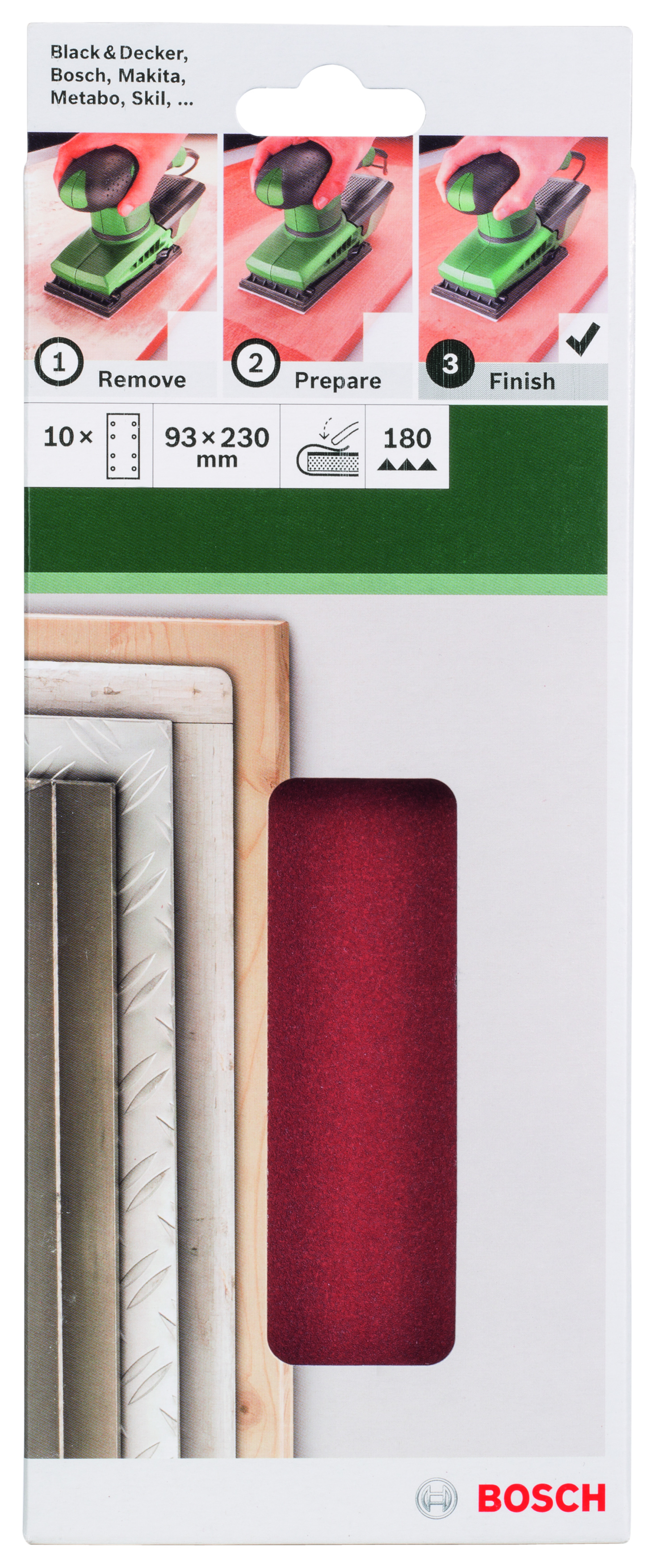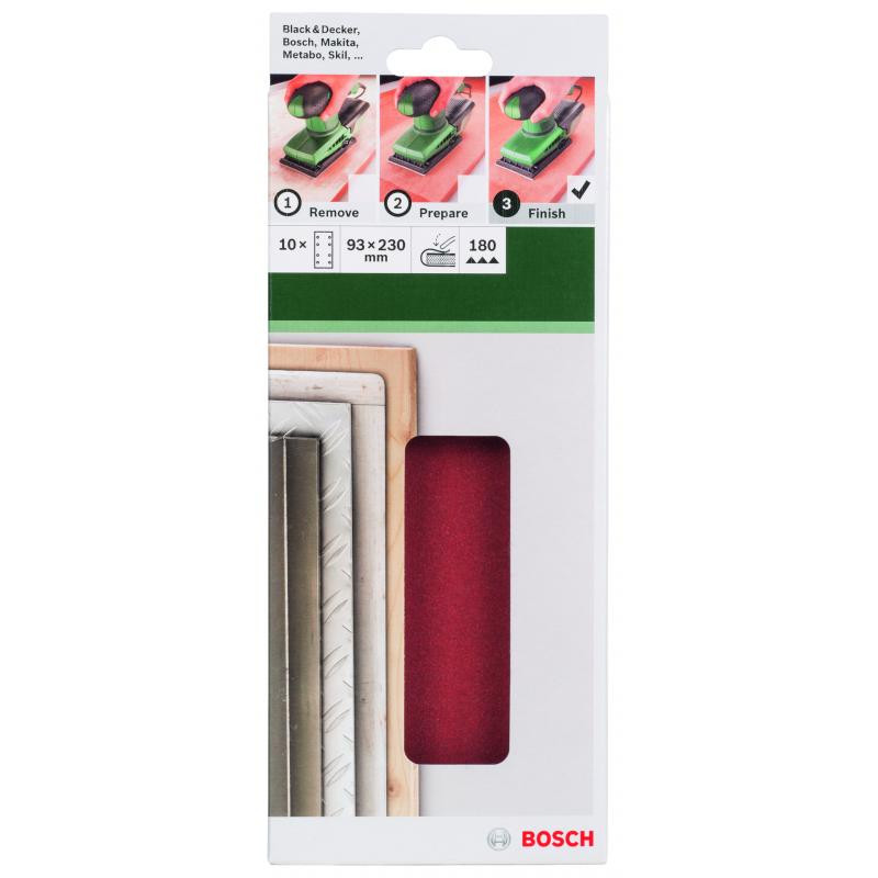 Description: PONÇAGE MP (FEUILLE ABRASIVE 93X230 MM, G180, WOOD, 8 TROUS, FIXATION ÉTRIER, (10))