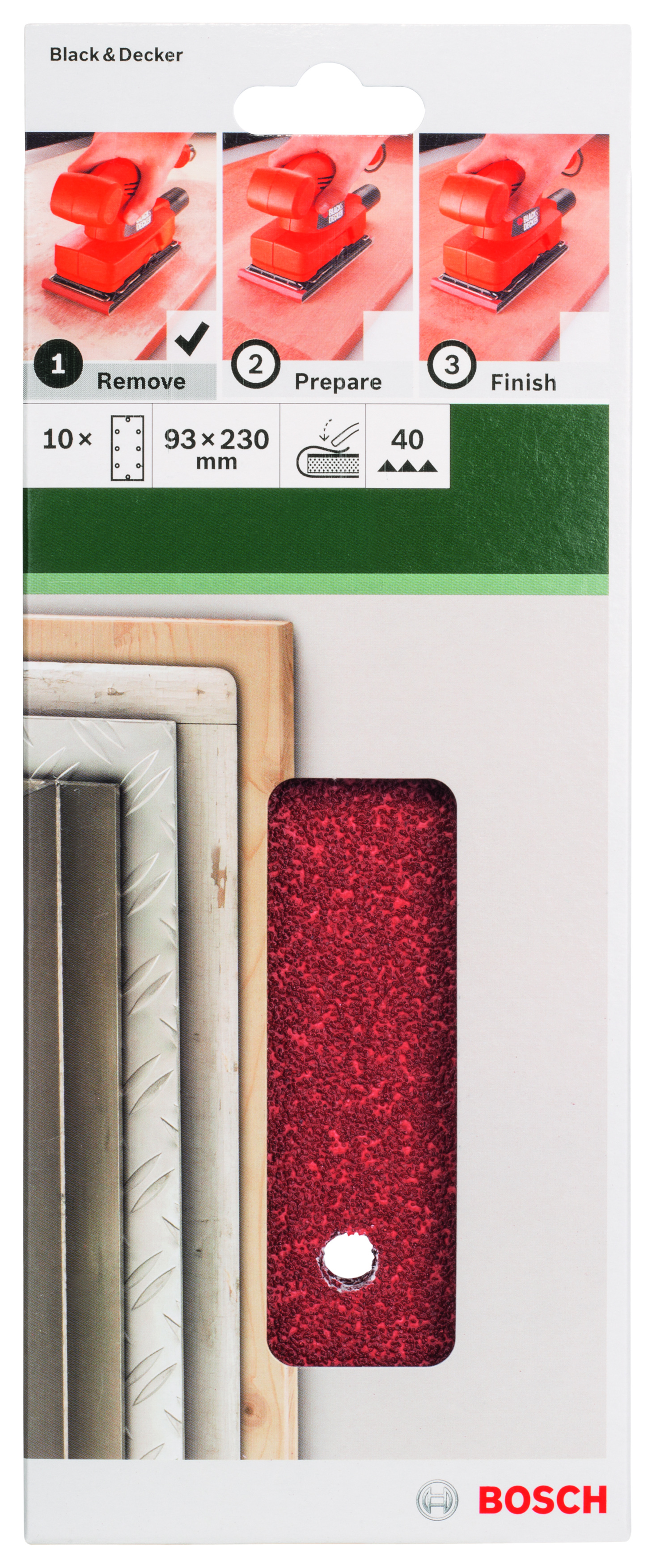 Emballage: 10Marque: BoschRéférence: 2609256B01EAN: 3165140615174Description: PONÇAGE MP (FEUILLE ABRASIVE 93X230 MM, G40, RW, 8 TROUS, FIXATION ÉTRIER (10))