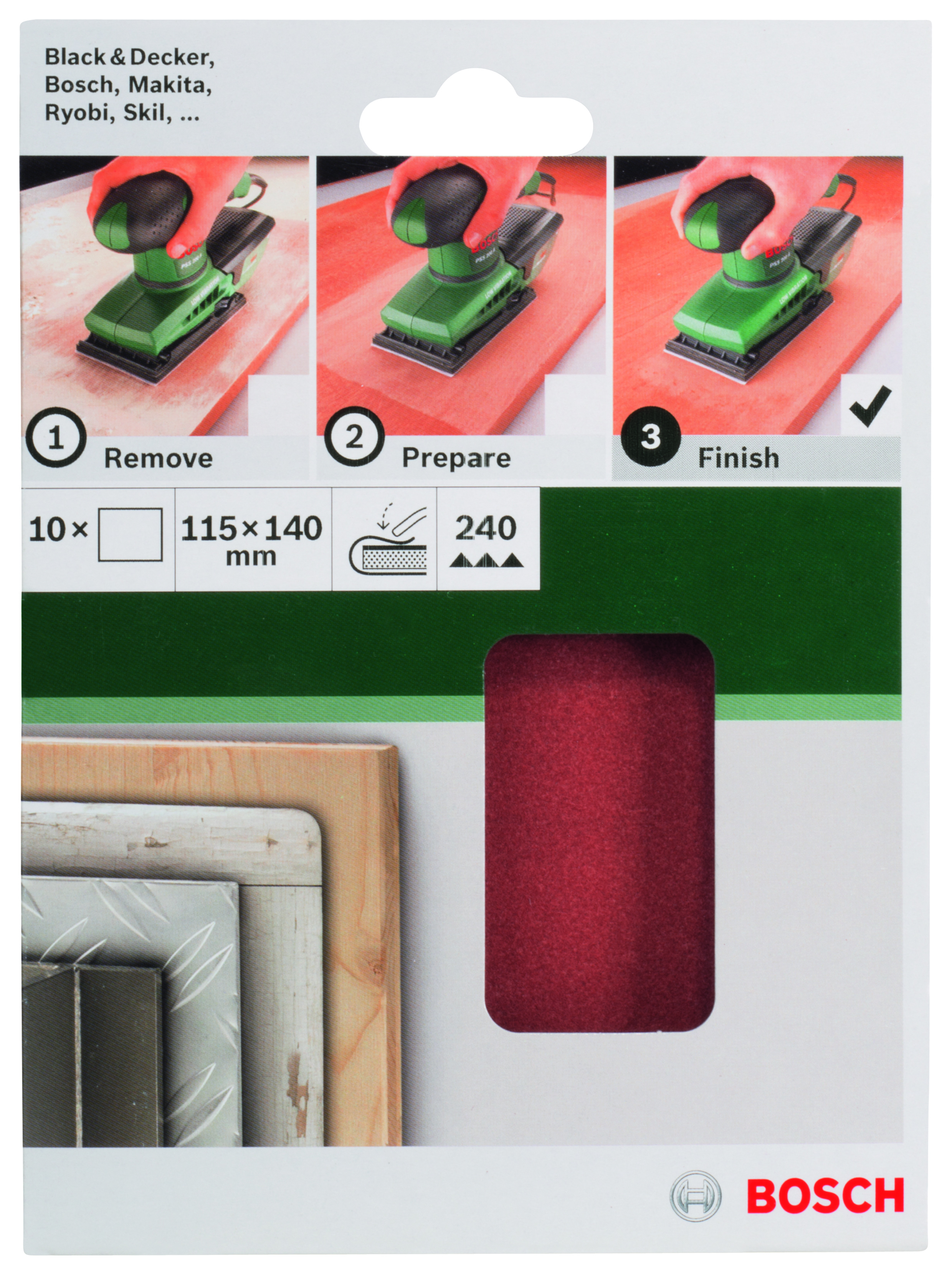 Emballage: 10Marque: BoschRéférence: 2609256B17EAN: 3165140615334Description: PONÇAGE MP (FEUILLE ABRASIVE 115X140MM, G150, RW, NON PERF., FIXATION ÉTRIER (10))
