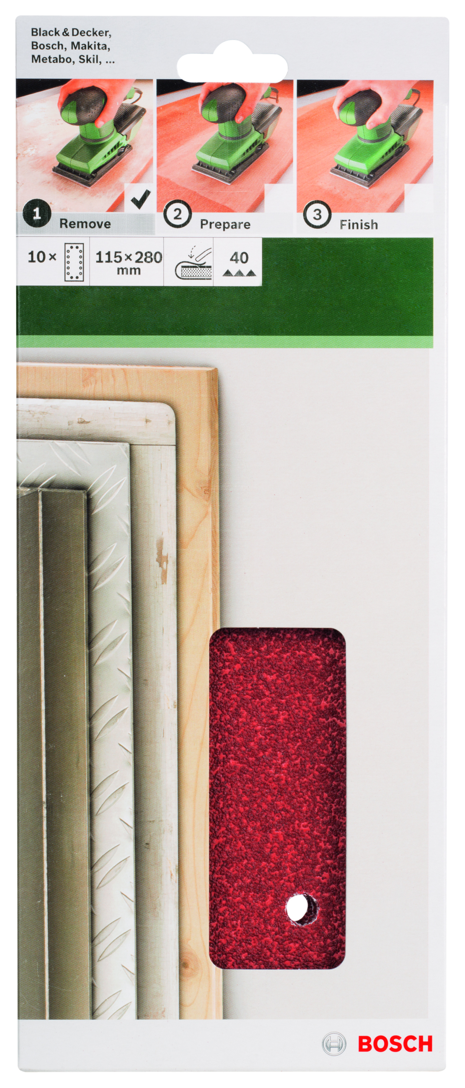 Emballage: 10Marque: BoschRéférence: 2609256B26EAN: 3165140615426Description: PONÇAGE MP (FEUILLE ABRASIVE 115X280 MM, G40 , RW, 14 TROUS, FIXATION ÉTRIER (10))