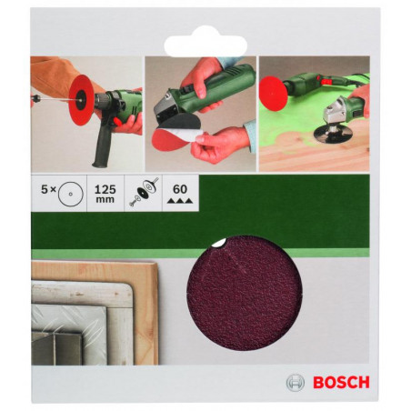 Emballage: 5Marque: BoschRéférence: 2609256B49EAN: 3165140616959Description: PONÇAGE MP (DISQUE ABRASIF Ø 125 MM, G60, RW, NON PERF., FIXATION ÉTRIER (5))