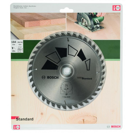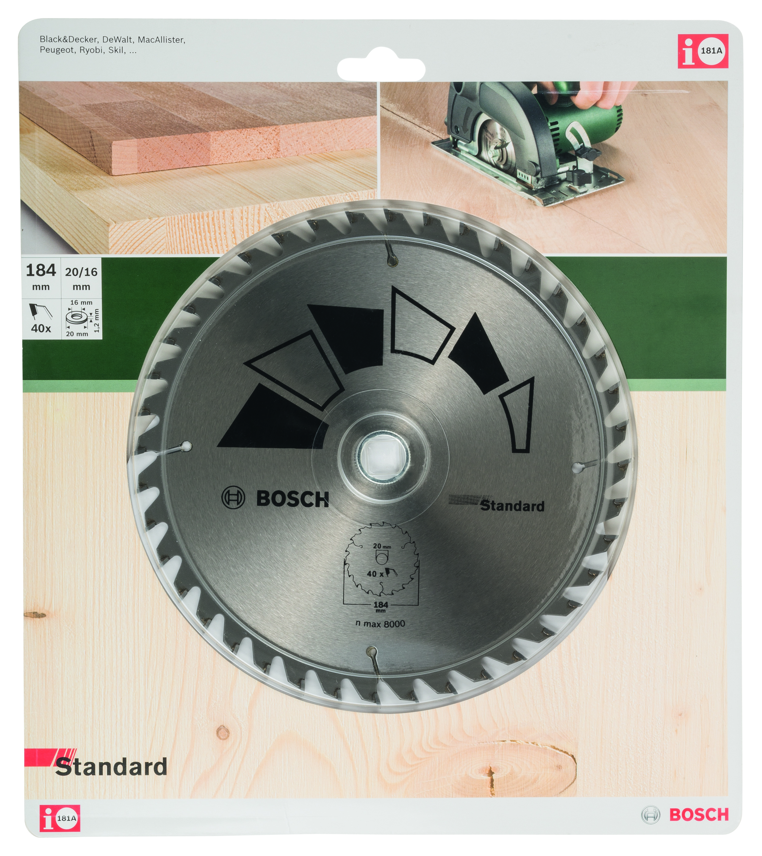 Emballage: 1Marque: BoschRéférence: 2609256B56EAN: 3165140622011Description: LAMES SCIES CIRC. MP (Lame de scie circulaire standard 184x20 T40)