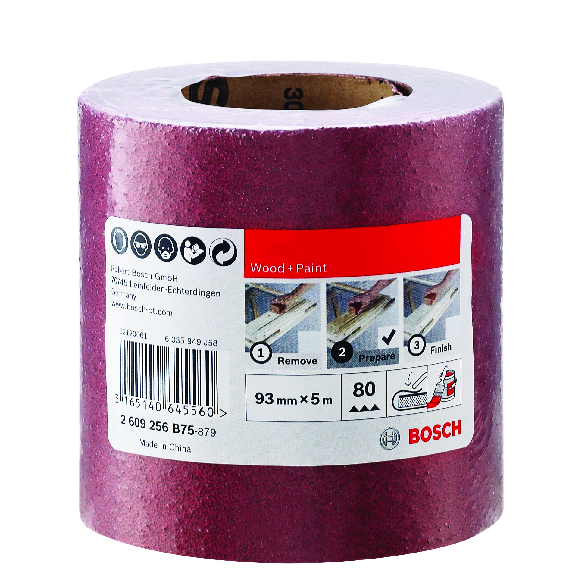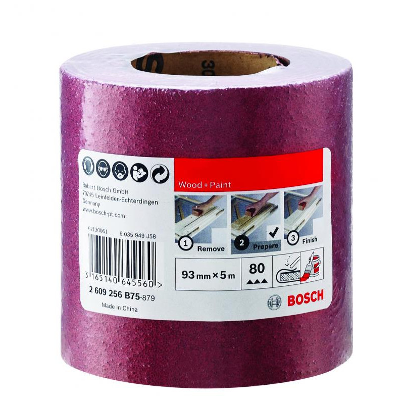 Emballage: 1Marque: BoschRéférence: 2609256B75EAN: 3165140645560Description: PONÇAGE MP (Rouleaux d`abrasif bois 93mmx5m K80)