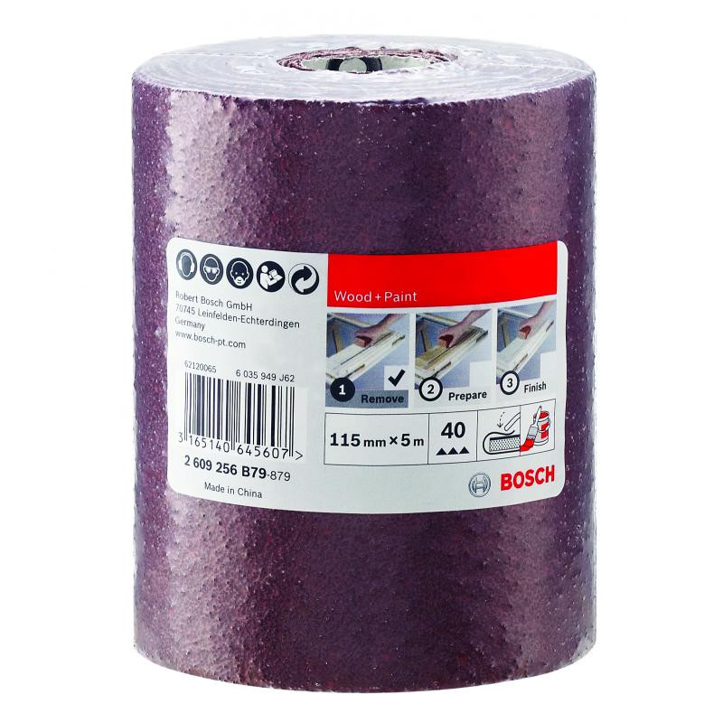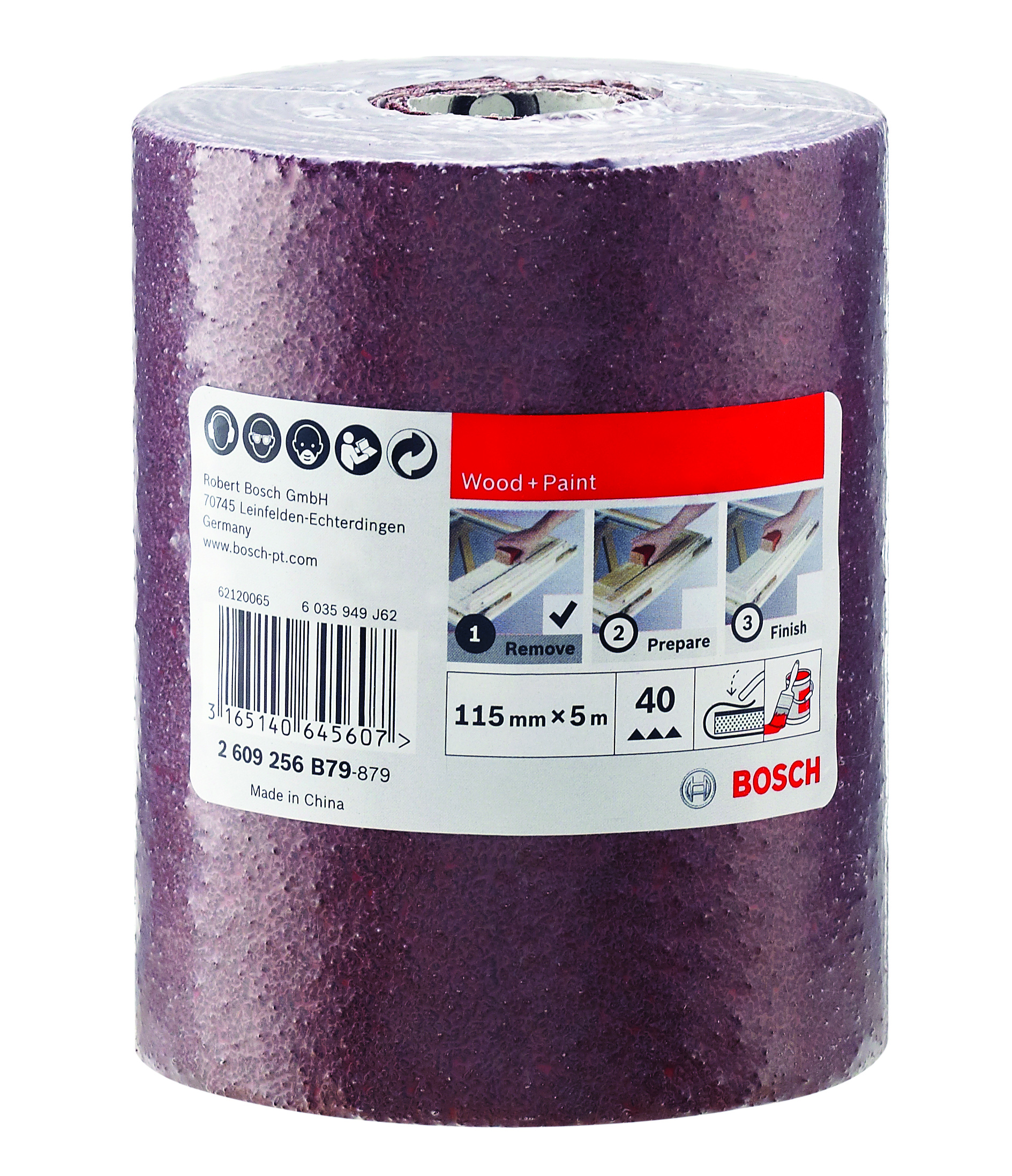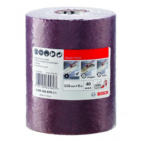 Emballage: 1Marque: BoschRéférence: 2609256B79EAN: 3165140645607Description: PONÇAGE MP (Rouleaux d`abrasif bois 115mmx5m K40)