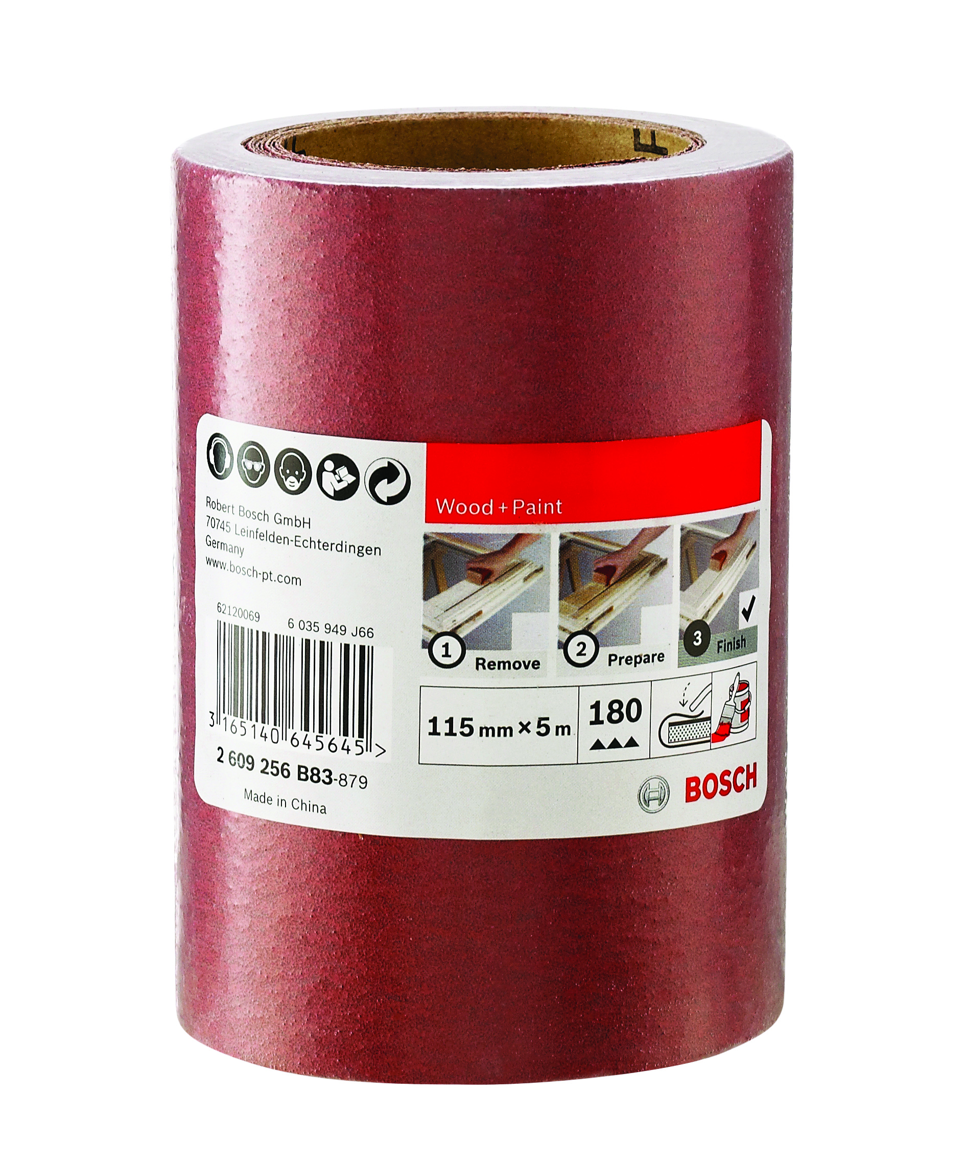 Emballage: 1Marque: BoschRéférence: 2609256B83EAN: 3165140645645Description: PONÇAGE MP (Rouleaux d`abrasif bois 115mmx5m K180)