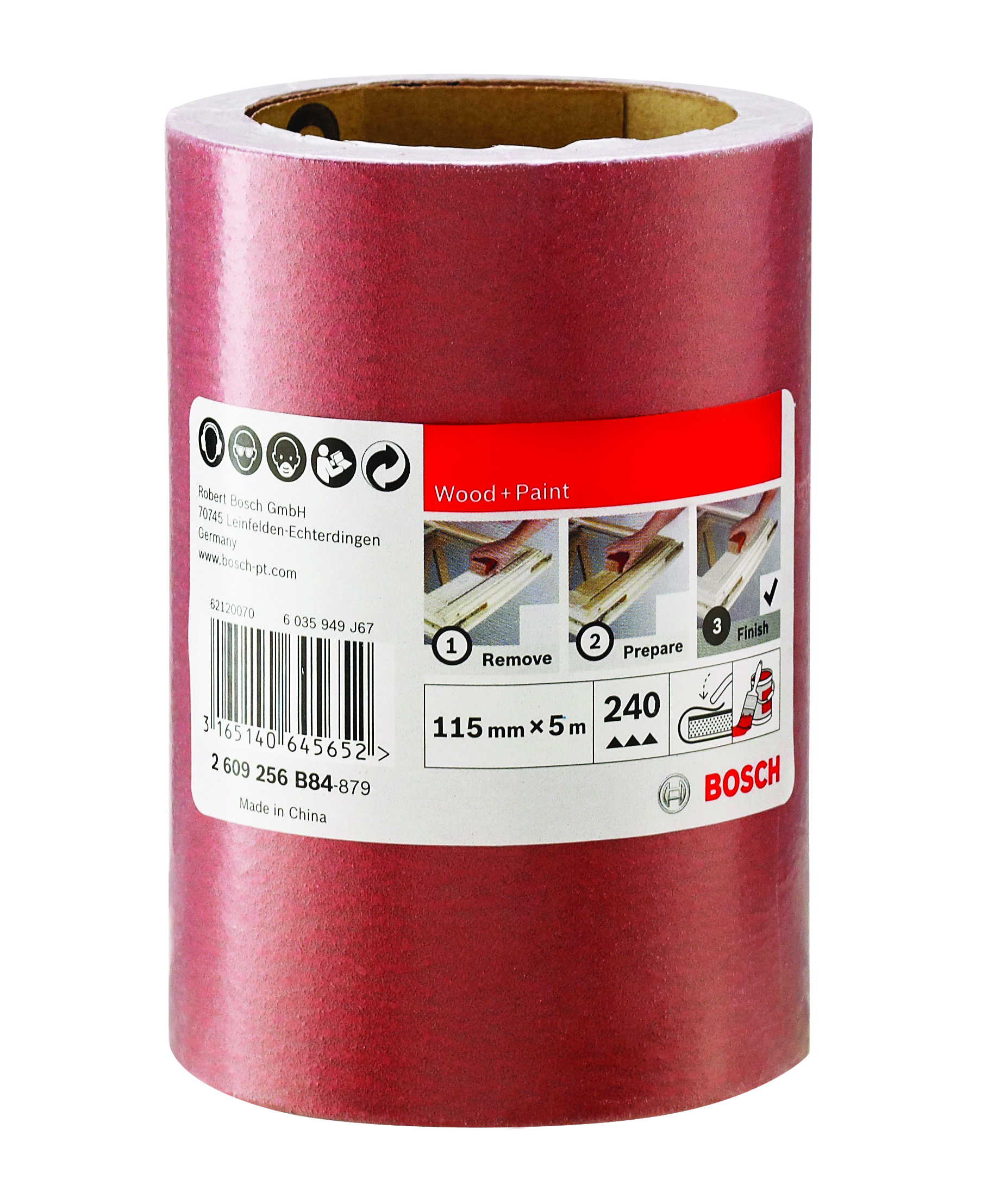 Emballage: 1Marque: BoschRéférence: 2609256B84EAN: 3165140645652Description: PONÇAGE MP (Rouleaux d`abrasif bois 115mmx5m K240)