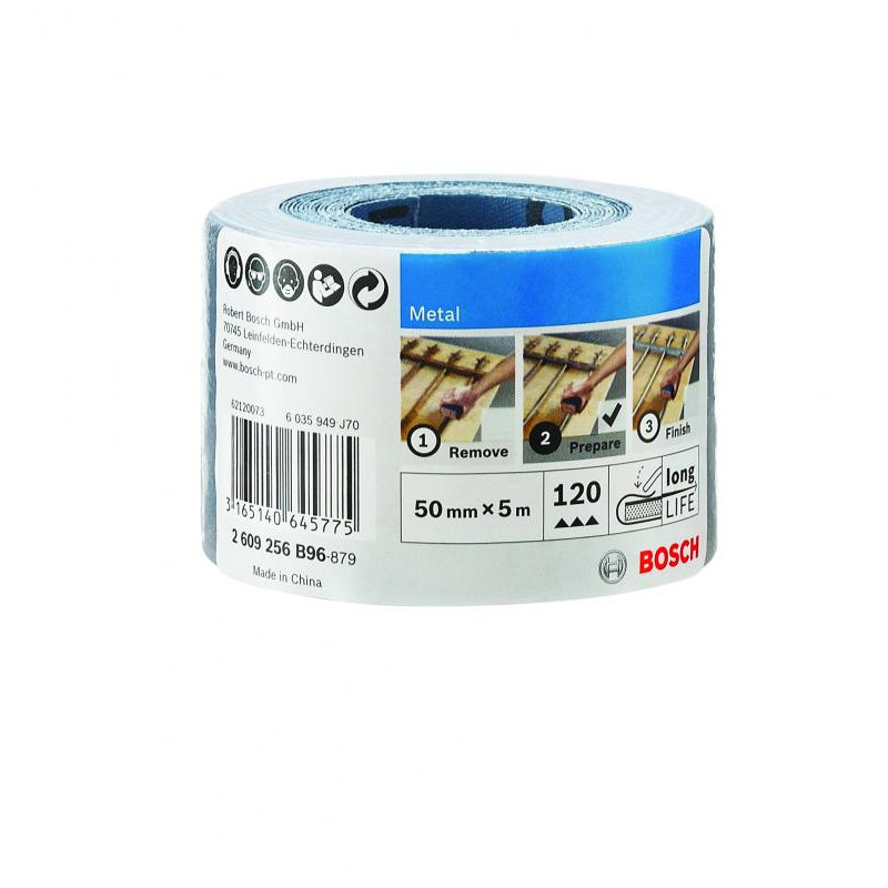 Emballage: 1Marque: BoschRéférence: 2609256B96EAN: 3165140645775Description: PONÇAGE MP (Rouleaux d`abrasif métal 50mmx5m K120)