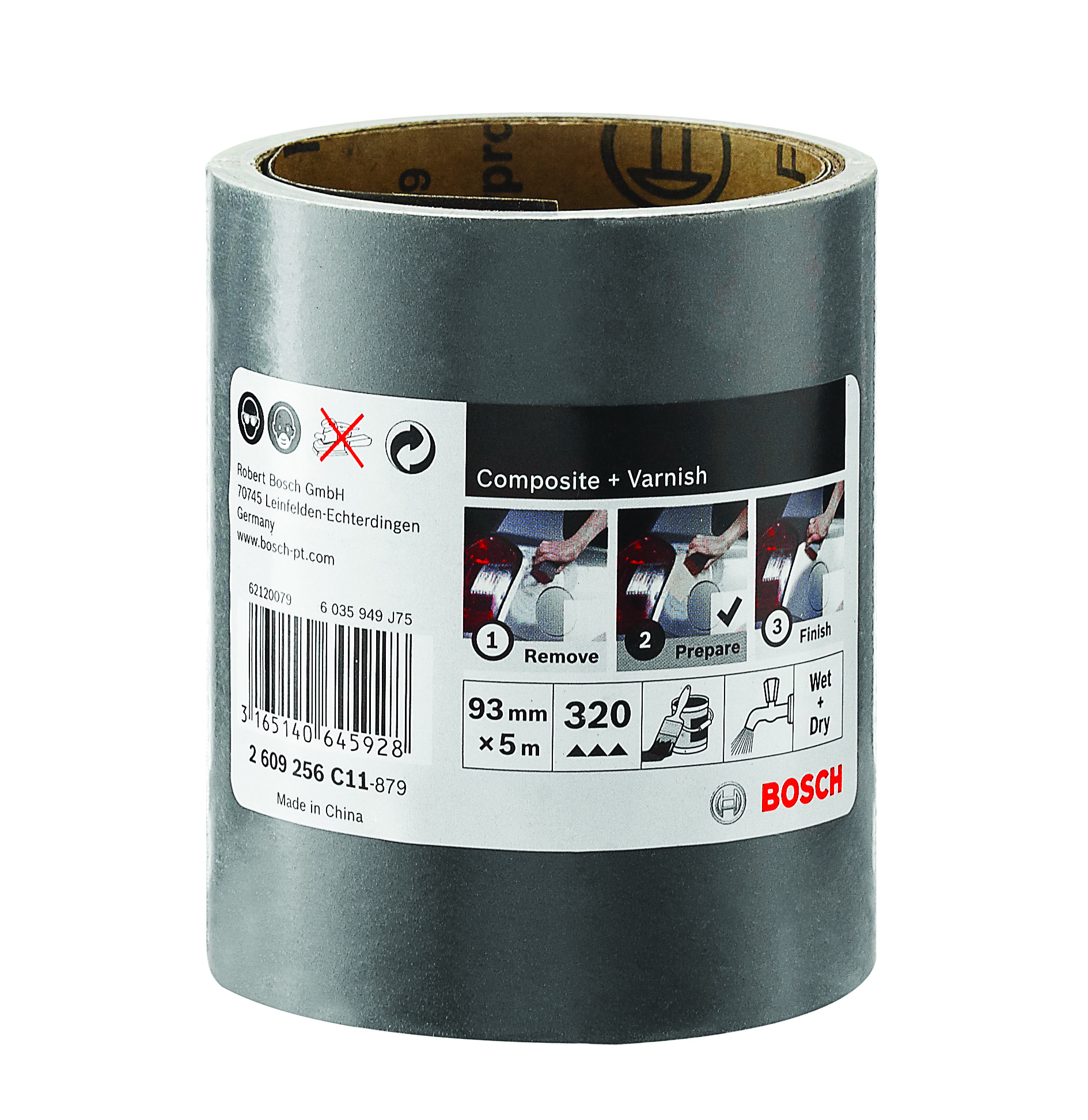 Emballage: 1Marque: BoschRéférence: 2609256C11EAN: 3165140645928Description: PONÇAGE MP (Rouleaux d`abrasif pierre 93mmx5m K320)